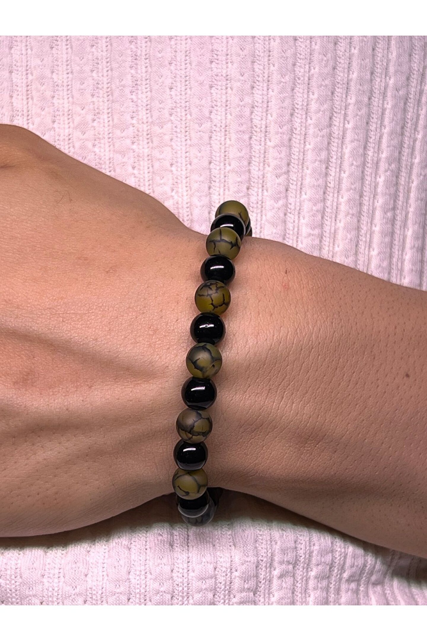 Yosunlu akik kullanımı sayesinde, bu bileklik hem şık hem de doğanın özünü yansıtan bir aksesuar sunar; Doğal taş cinsi ile üretilmiş olup, her bileklik benzersiz ve eşsiz bir görünüm kazandırır; Doğal taş materyaliyle dikkat çeken bu bileklik, zarifliği ve dayanıklılığı bir arada sunar;