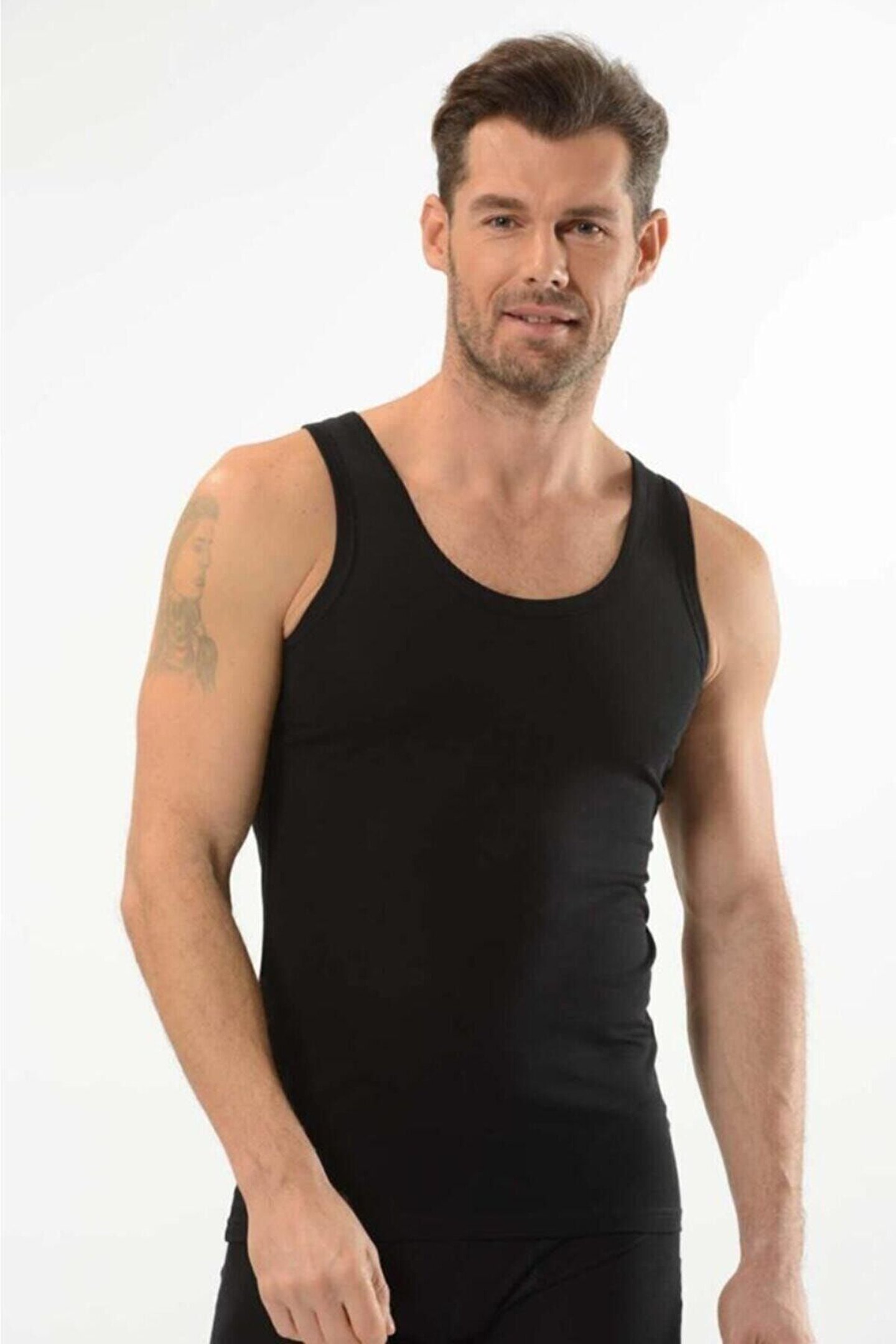 Rahat ve şık bir iç giyim deneyimi sunan siyah askılı atlet, günlük kullanım için idealdir; Slim fit kalıbı sayesinde vücut hatlarınıza mükemmel uyum sağlar ve konforlu bir kullanım sunar; Dokuma kumaş yapısı, dayanıklılığı artırırken cildinizle dost dokunuşlar sunar; İç giyim koleksiyonunuzda yer alacak bu atlet, düz tasarımı ile sade ve zamansız bir stil oluşturur; Regular boy kesimiyle her bedene uygunluk gösterir ve rahat hareket etme özgürlüğü tanır; %96 pamuk içeriği ile nefes alabilirlik özelliği sağlar ve cilt dostu bir deneyim sunar; Esnek yapısı sayesinde hareketlerinizde size eşlik ederken formunu korur; %4 elastan içeriği esnekliği arttırır; Askılı kol boyu ile yaz aylarında serinlik hissi verirken, tüm yaş gruplarına hitap eden tasarımıyla geniş bir kullanıcı yelpazesine sahiptir;