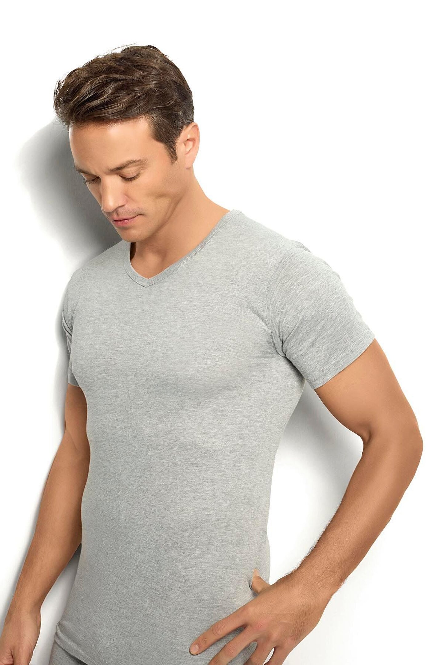 Jiber Erkek Gri Pamuklu Kısa Kollu V Yaka Atlet Fanila 3lü Paket-112