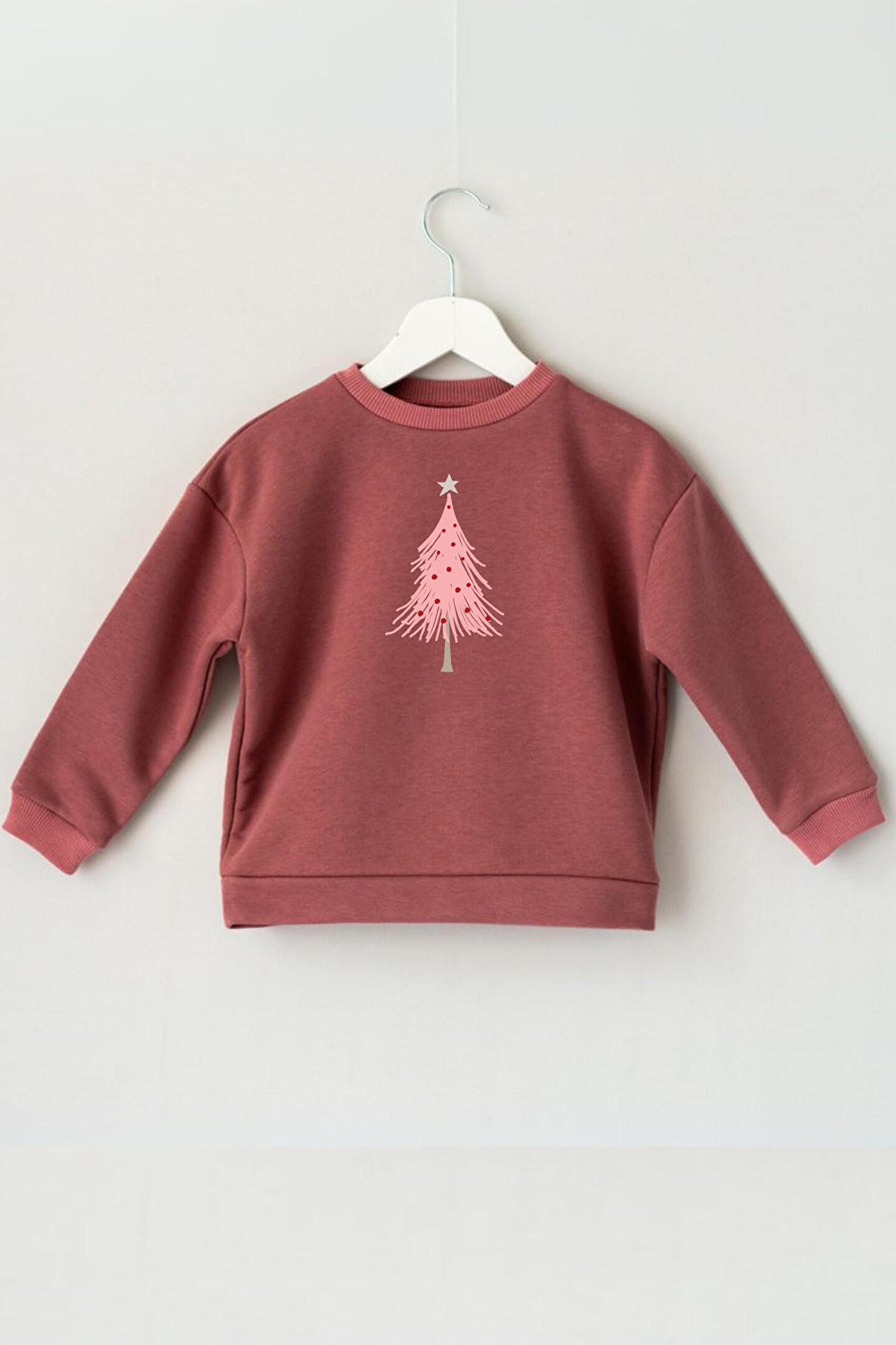 Jolie Ma Yılbaşı sweatshirt çocuk pembe yılbaşı ağacı