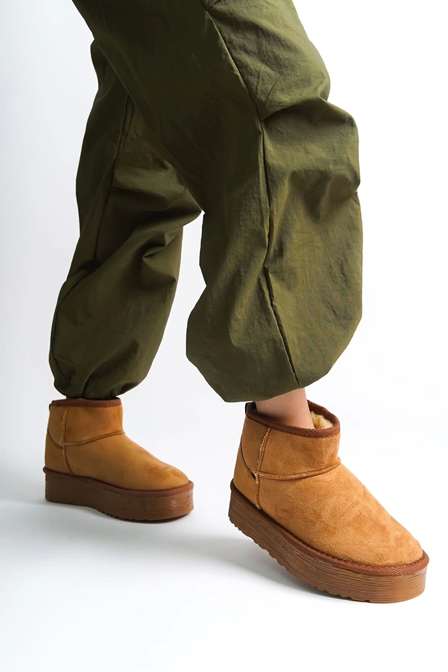 AMELIA Bağcıksız Düz ve Kalın Taban İçi Kürklü Kısa Süet Kadın Bot STT - Taba
