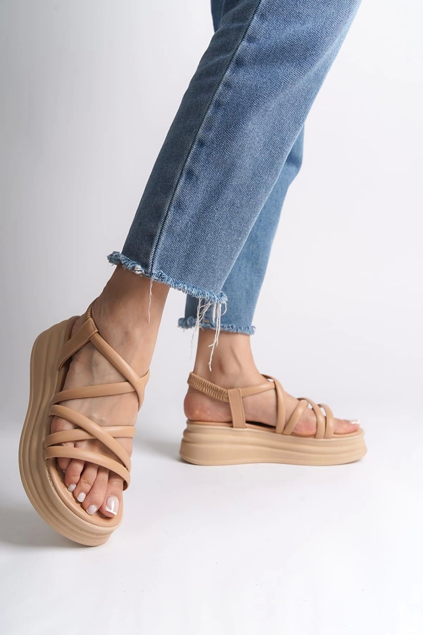 BELLA Lastikli Şerit Detaylı Ortopedik Taban Kadın Sandalet CTT - Ten