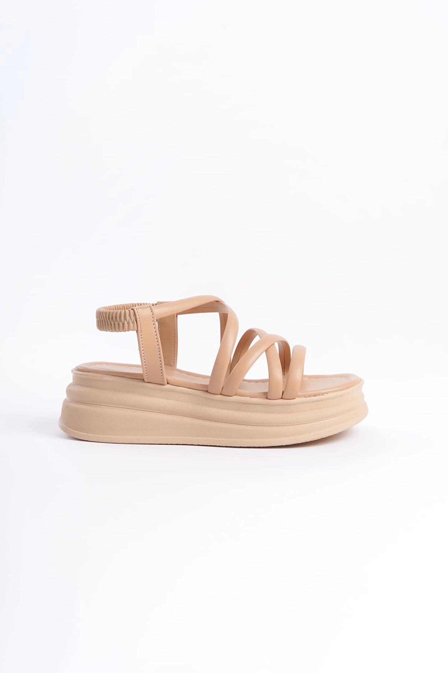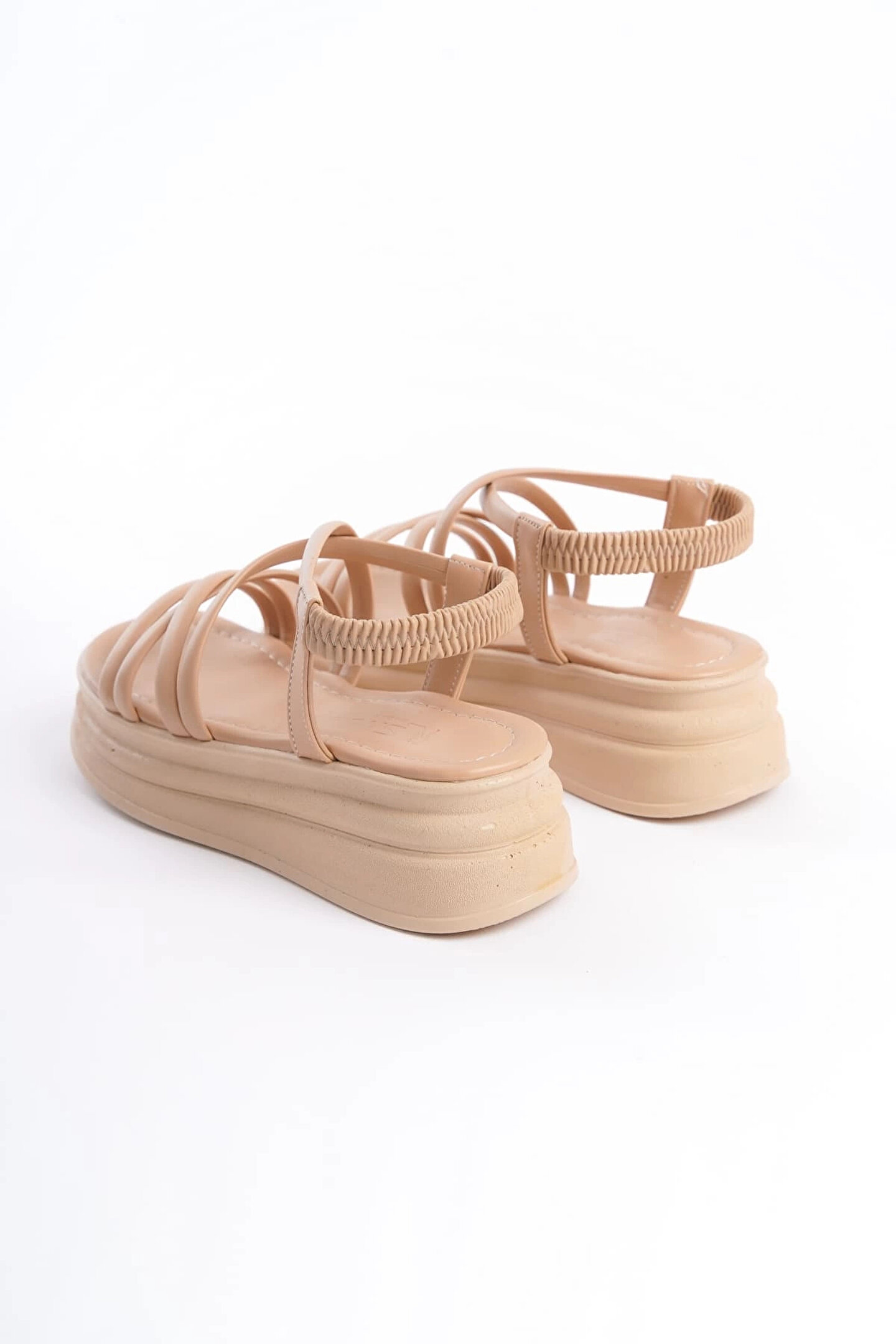 Joy Ayakkabı BELLA Lastikli Şerit Detaylı Ortopedik Taban Kadın Sandalet CTT - Ten