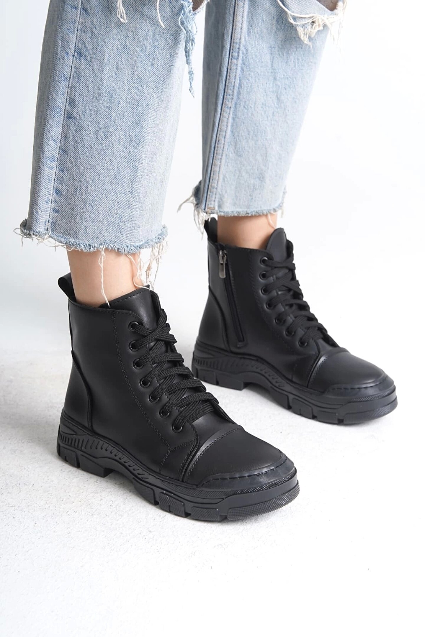 BLOOM Bağcıklı Fermuarlı Ortopedik TabanKadın Bot ST - Siyah