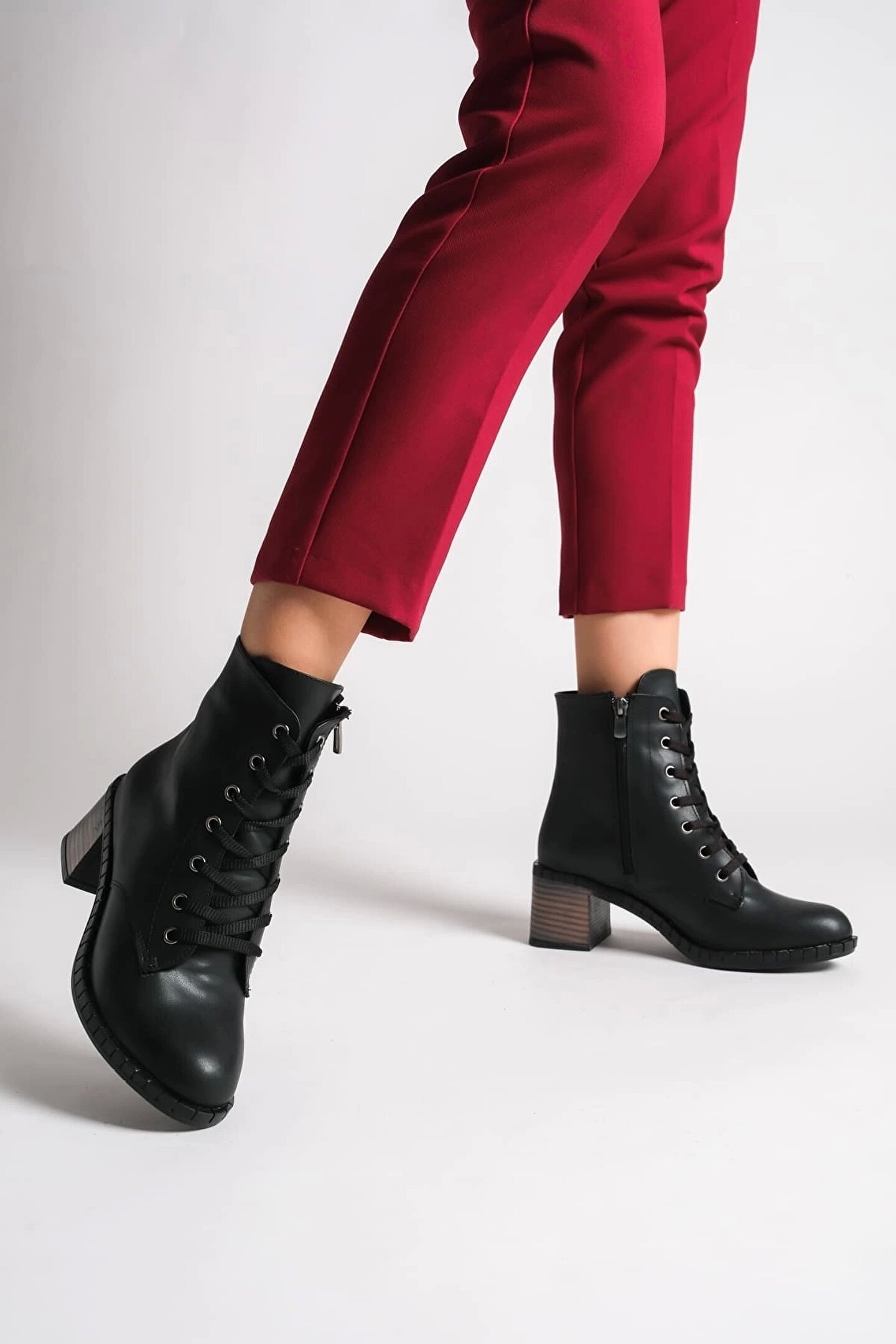 DIANA Bağcıklı Fermuarlı Ortopedik Taban TopukluKadın Bot ST - Siyah