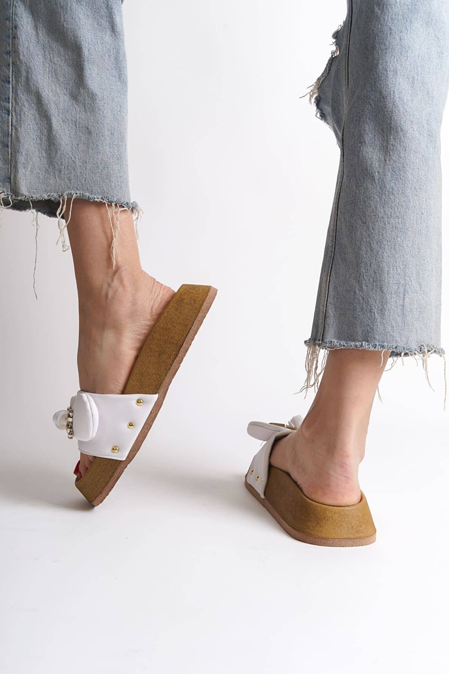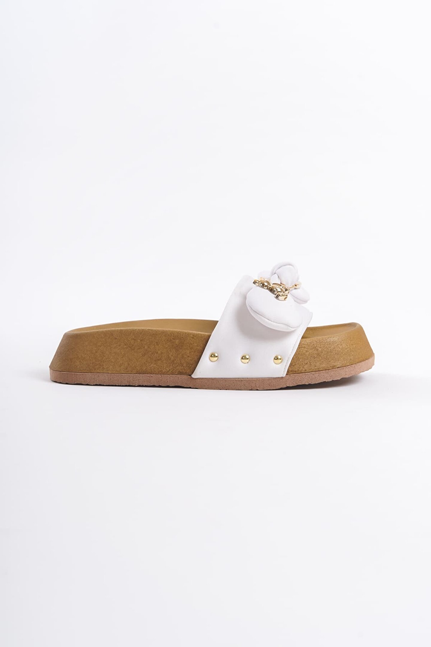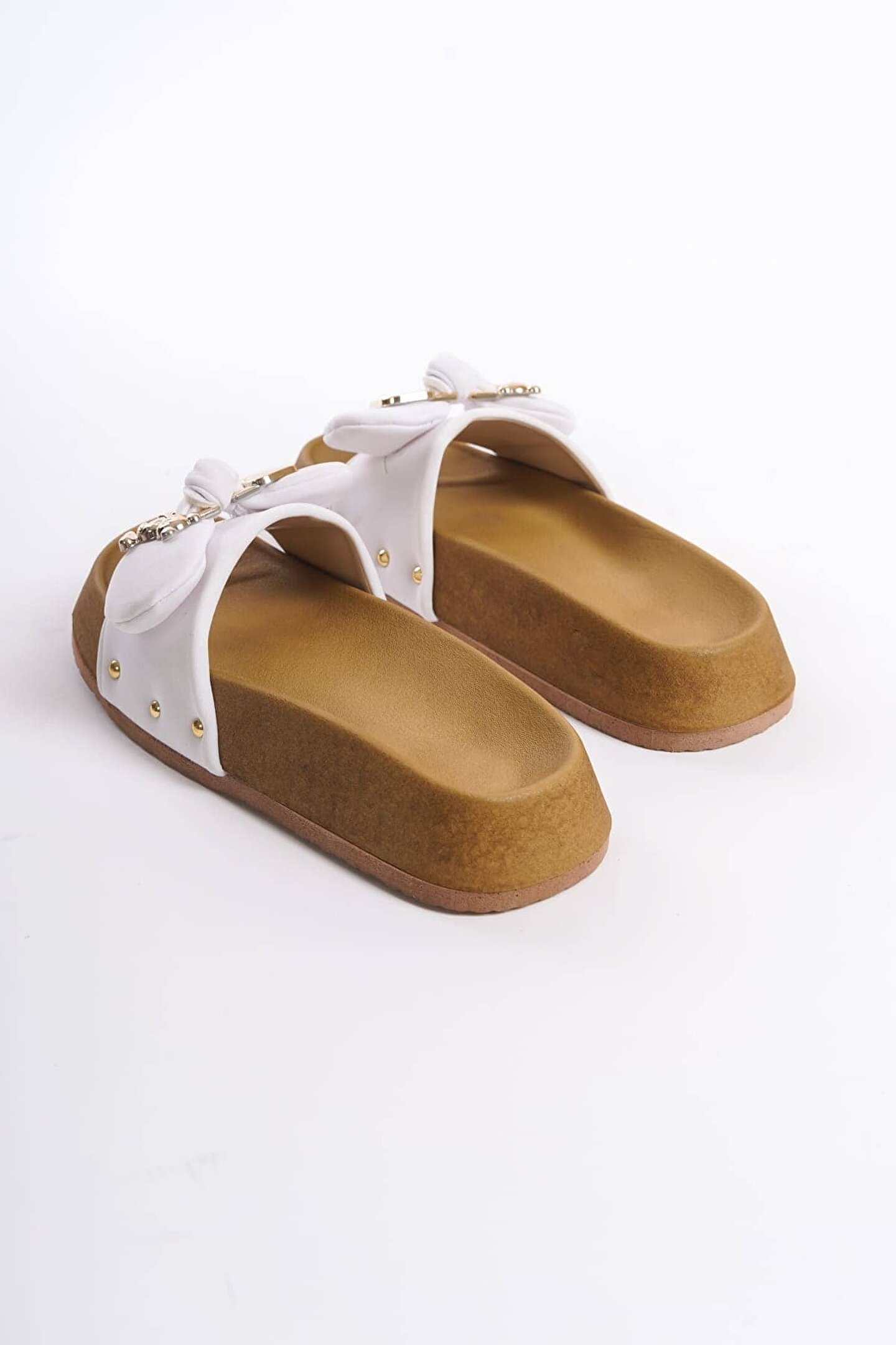 Joy Ayakkabı DILA Kalın ve Ortopedik Taban Ayıcıklı Saten Kadın Terlik SKT - Beyaz