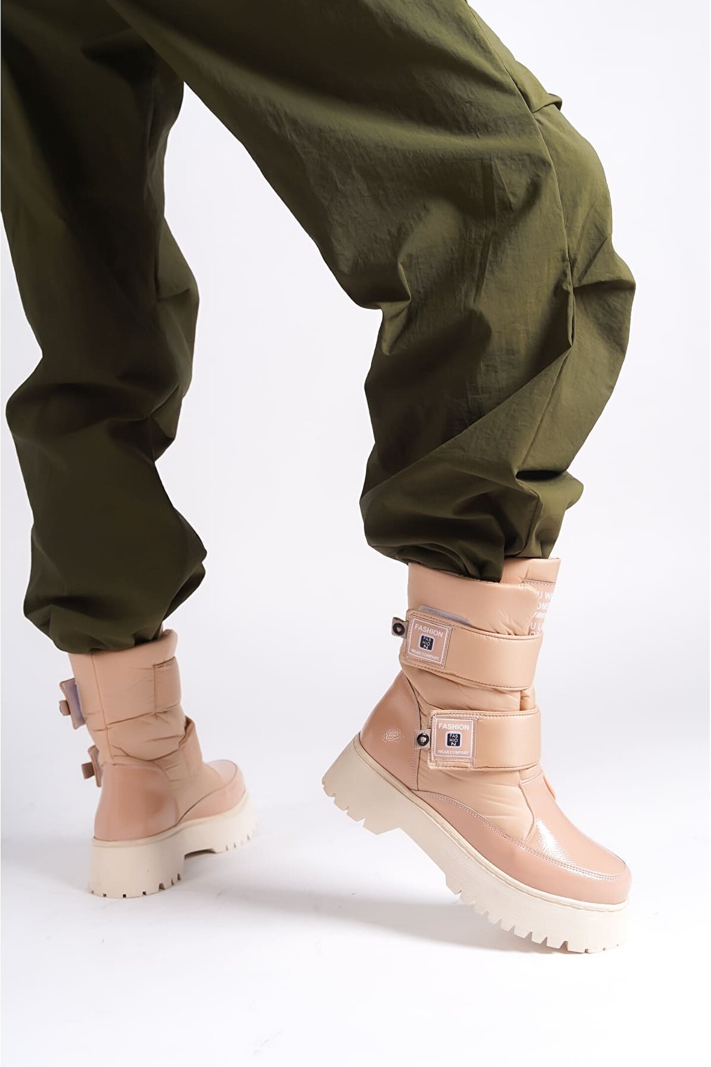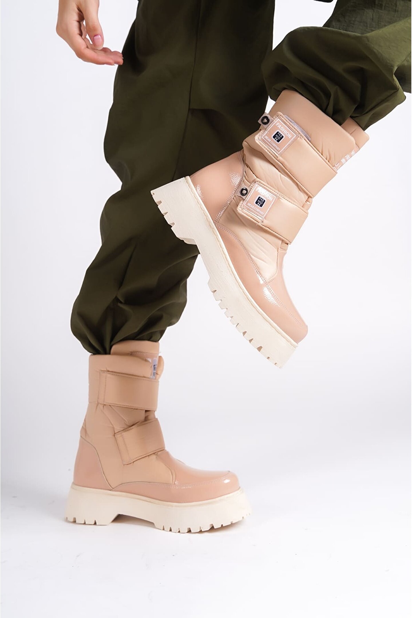 Joy Ayakkabı ELISA Cırt Cırtlı Paraşüt Kumaş Rugan Kadın Bot RTT - Ten