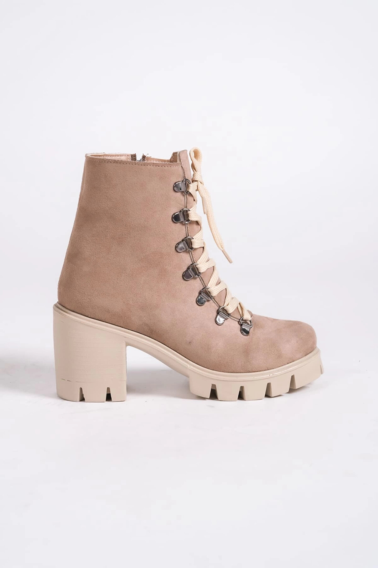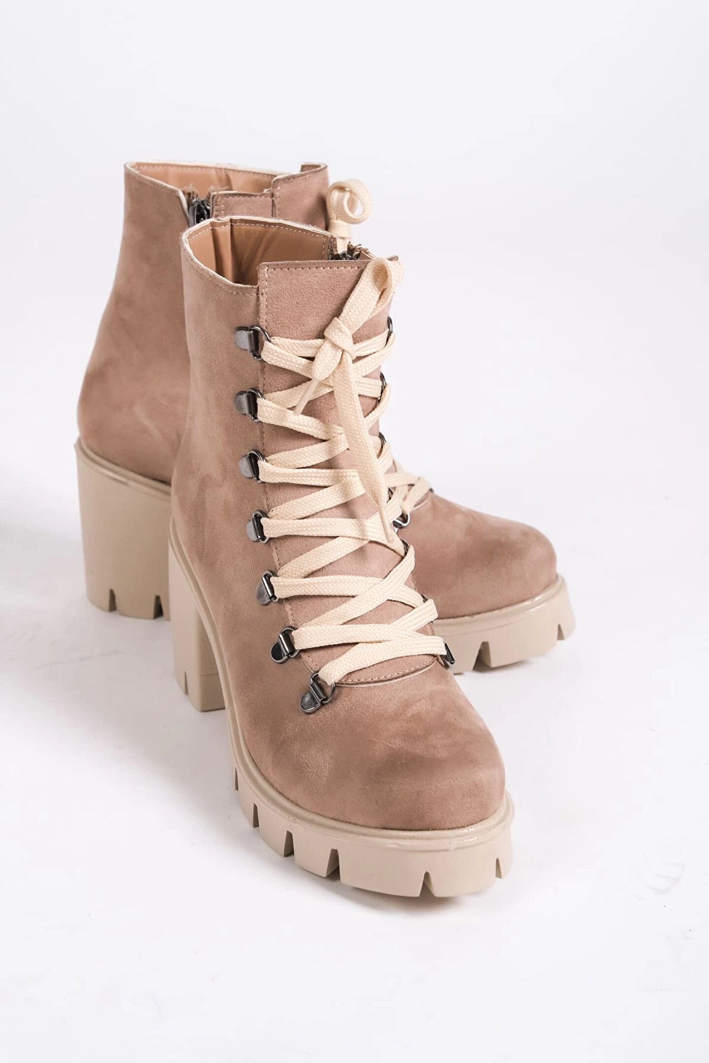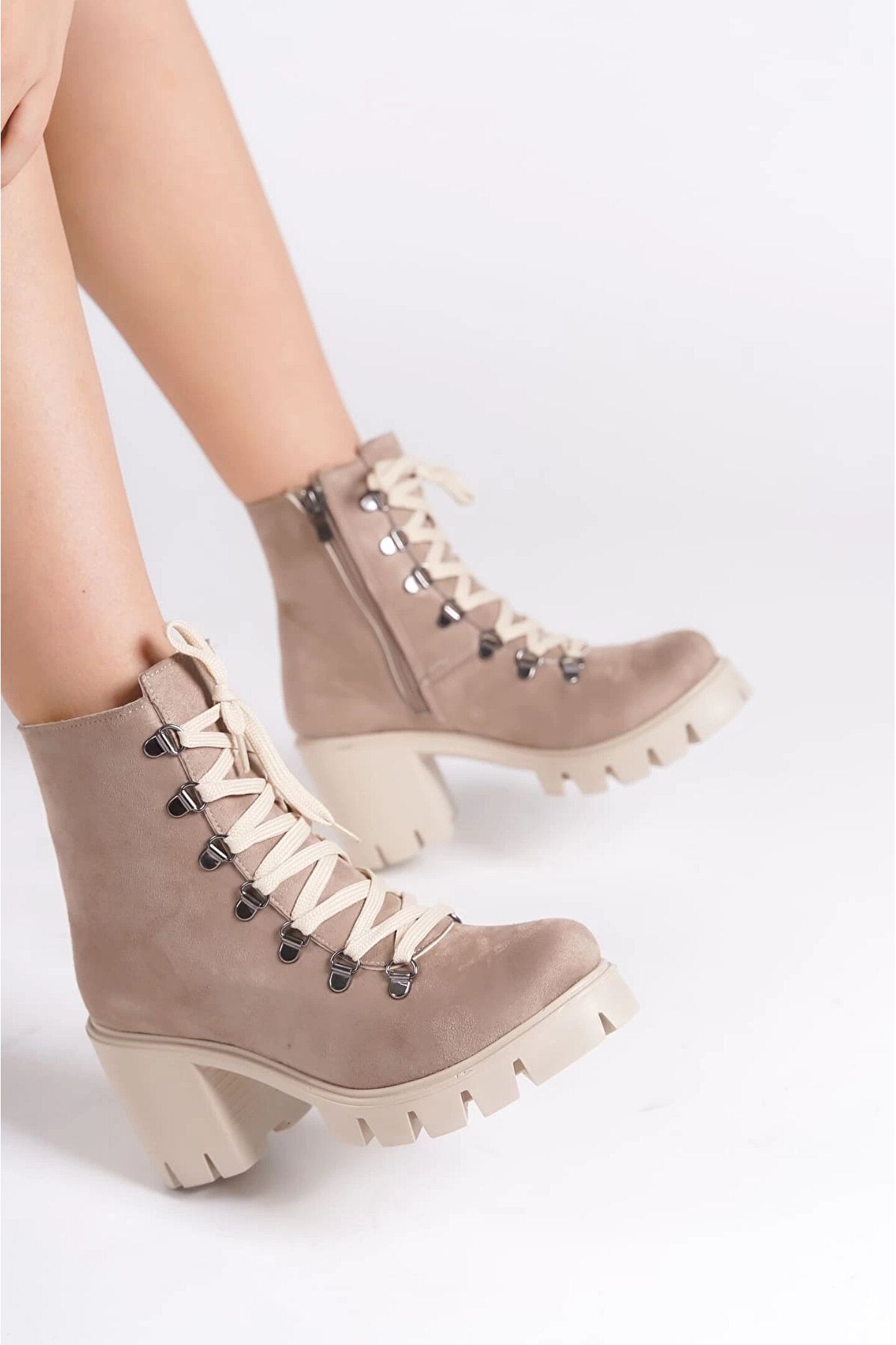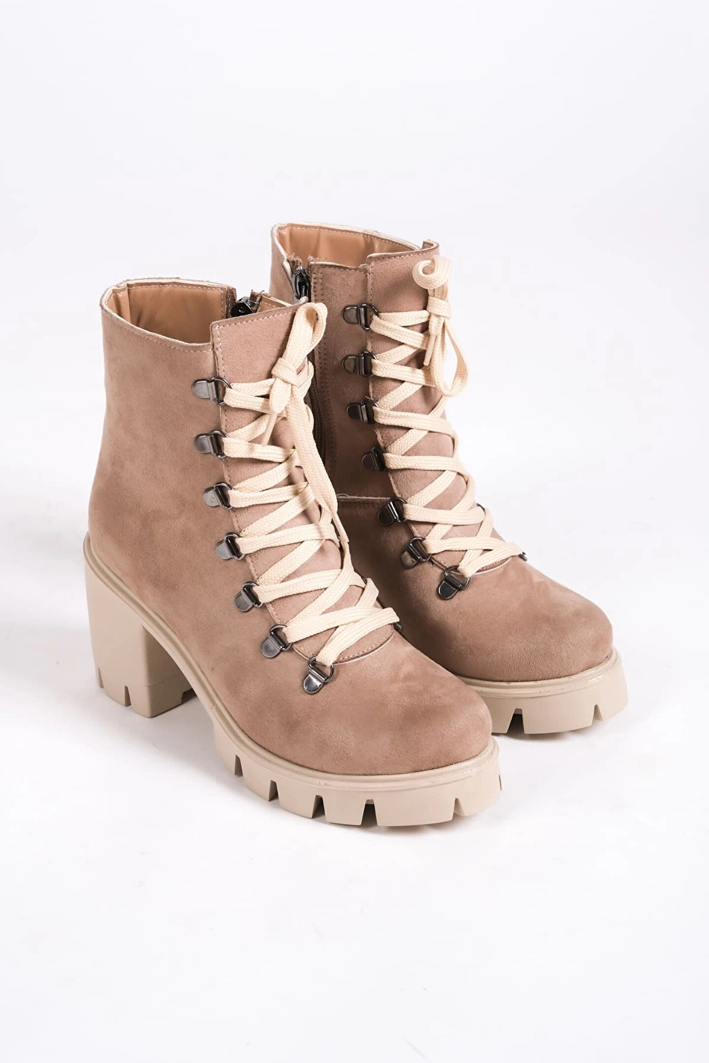 Joy Ayakkabı EMMA Bağcıklı Fermuarlı Ortopedik Taban Topuklu Süet Kadın Bot - Ten