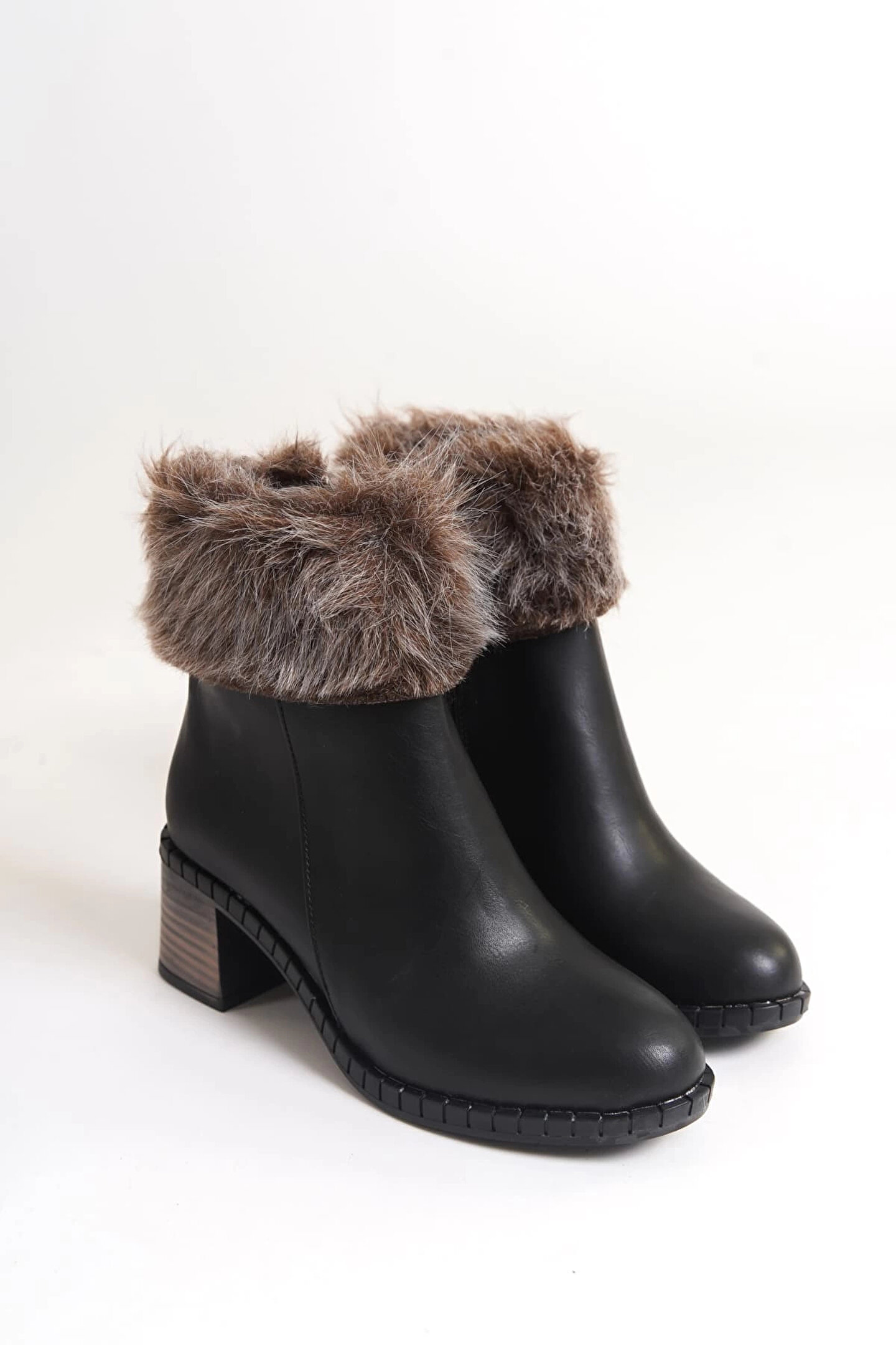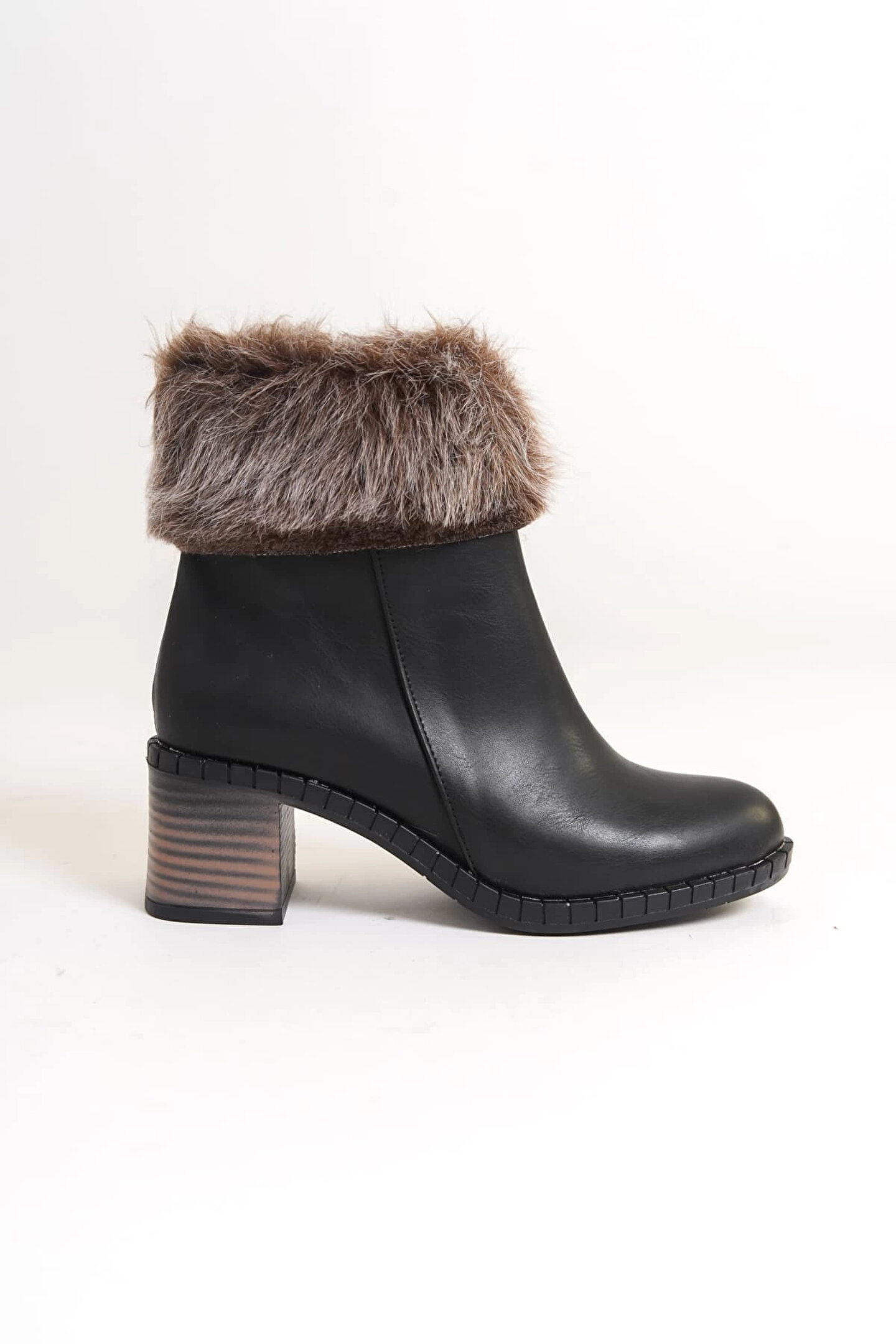 Joy Ayakkabı JULIA Fermuarlı Ortopedik Taban Tüylü Topuklu Kadın Bot CST - Siyah