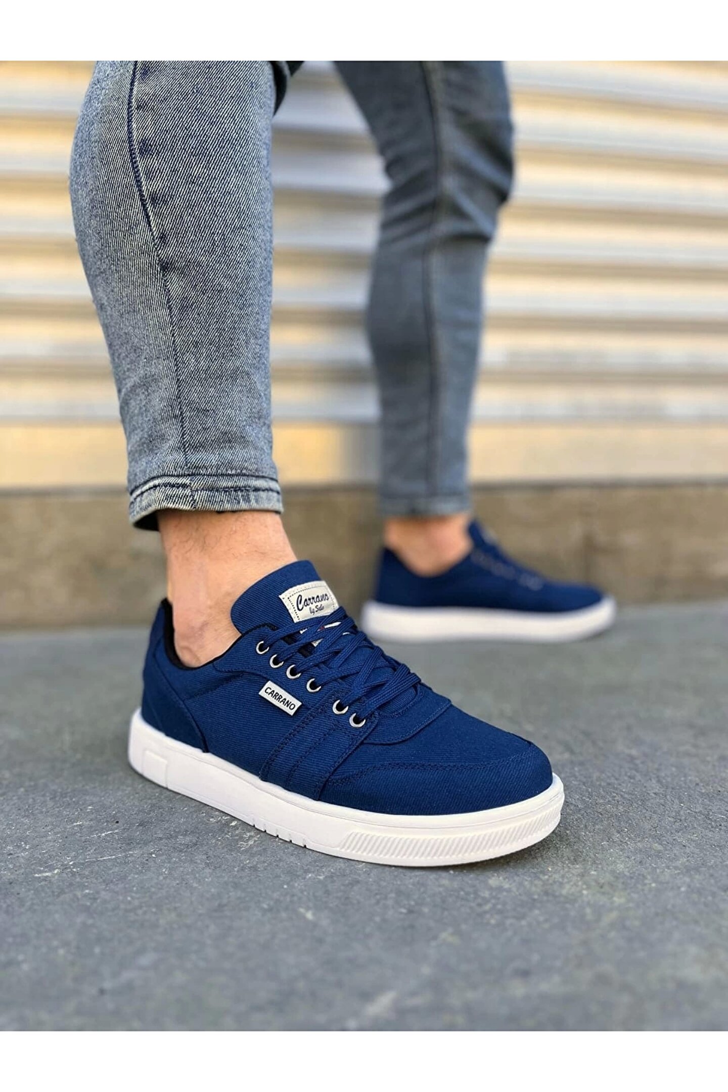Joy Ayakkabı JY0118 REX Bağcıklı Keten Kumaş Erkek Günlük Sneaker Ayakkabı KBT - Lacivert