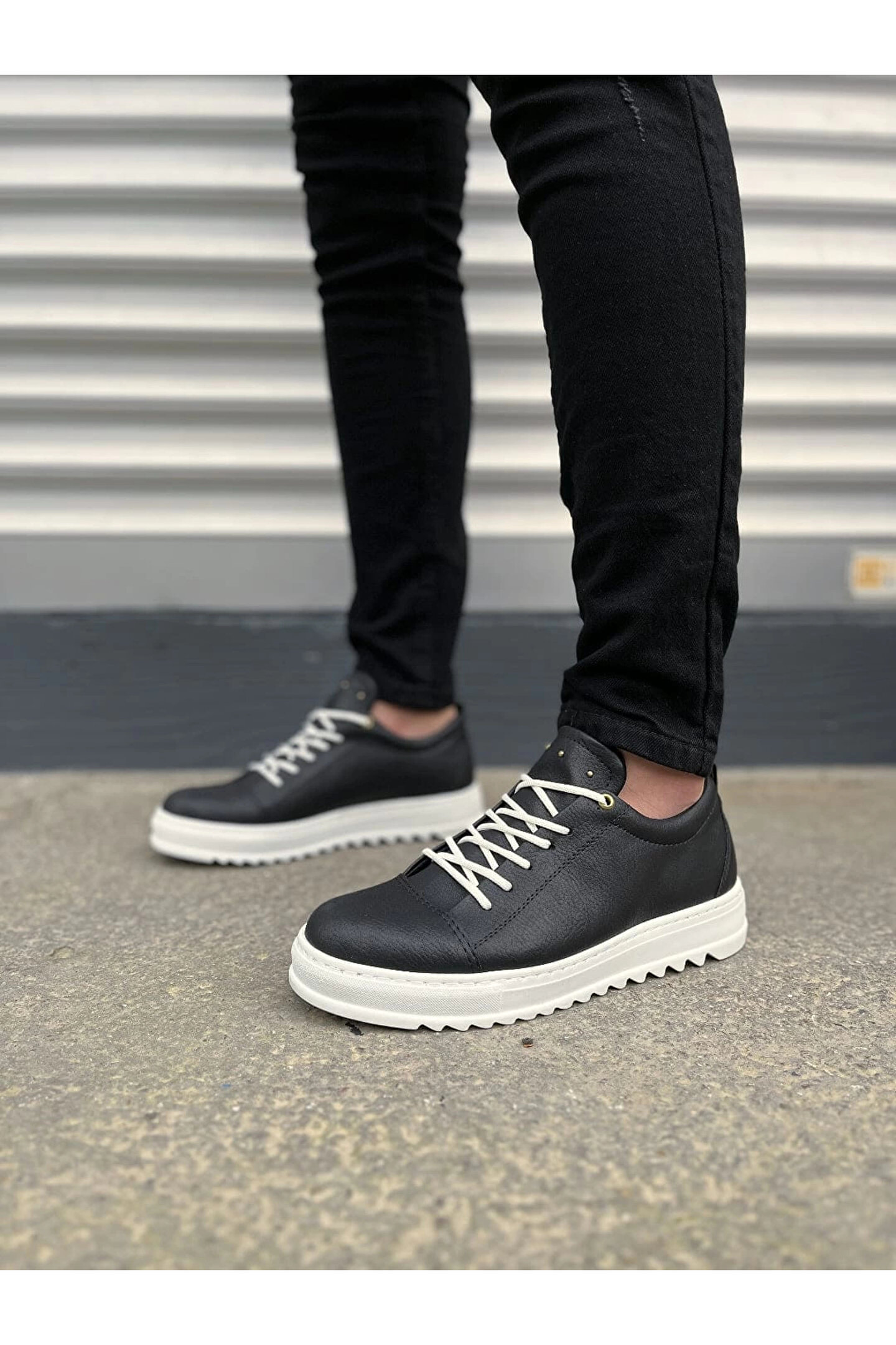 Joy Ayakkabı JY152 Cool Bağcıklı Cilt Erkek Günlük Spor Klasik Ayakkabı CBT - Siyah
