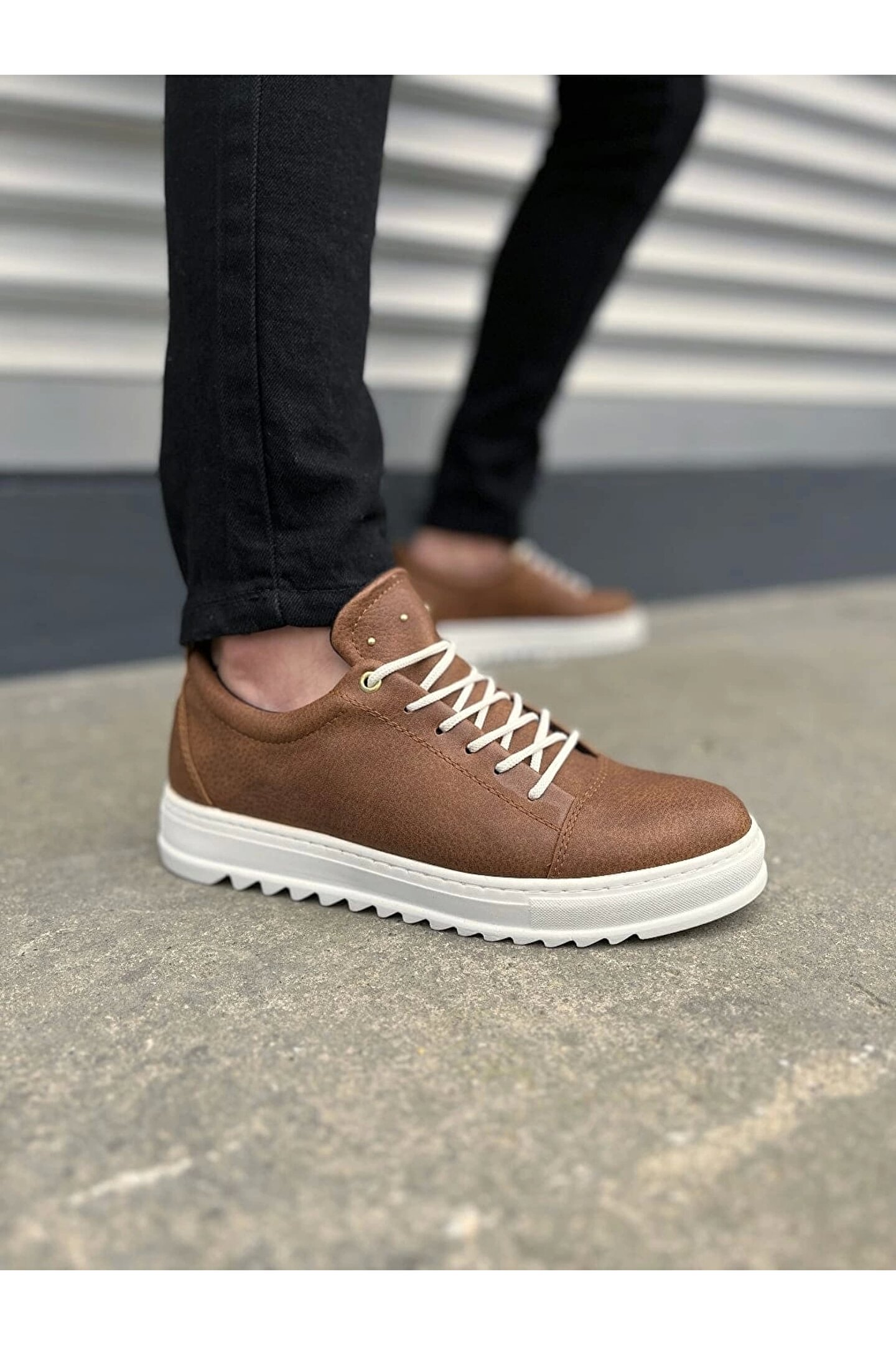 JY152 Cool Bağcıklı Cilt Erkek Günlük Spor Klasik Ayakkabı CBT - Taba