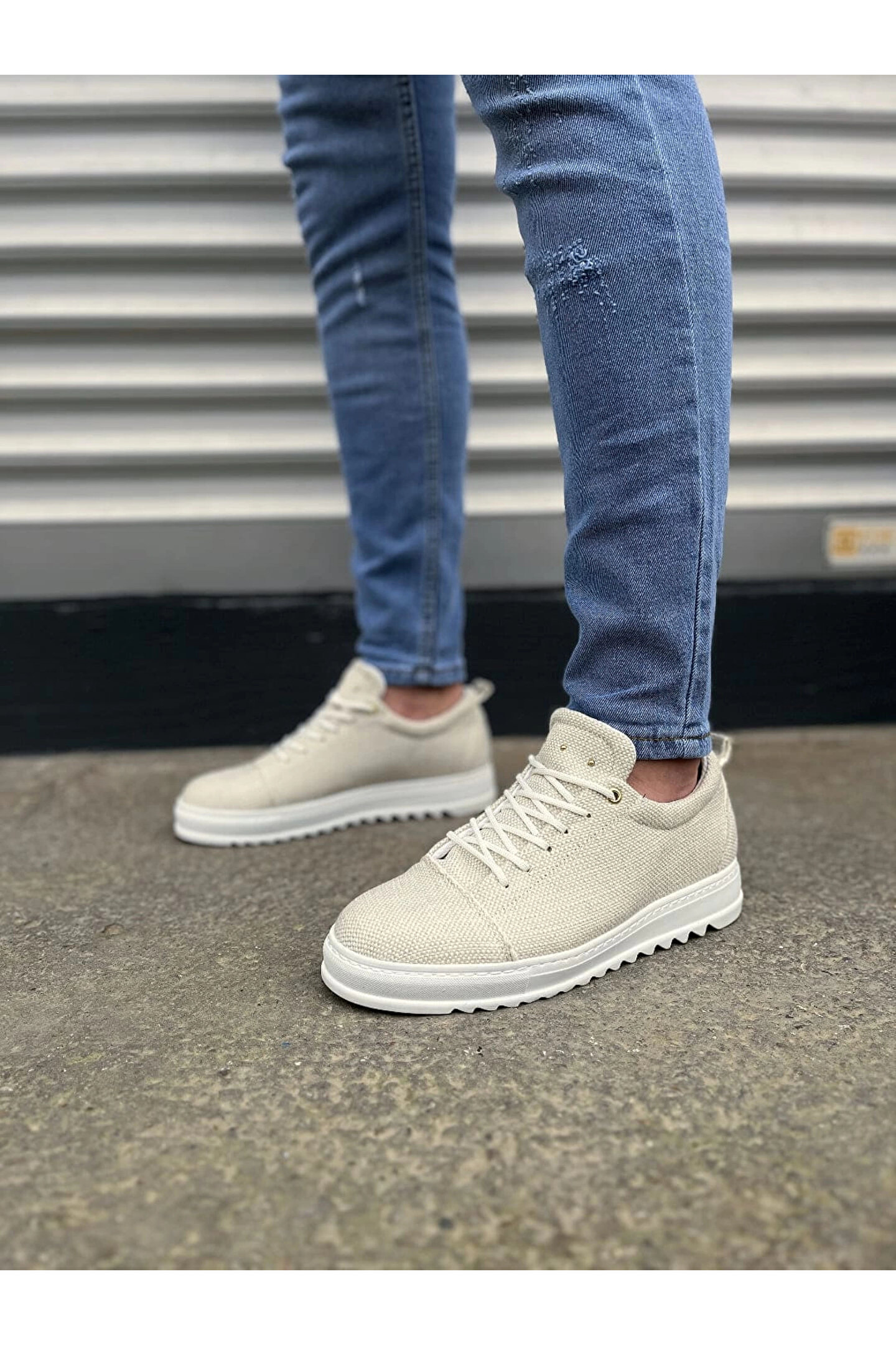 Joy Ayakkabı JY152 Cool Bağcıklı Keten Erkek Günlük Spor Klasik Ayakkabı KBT - Beyaz