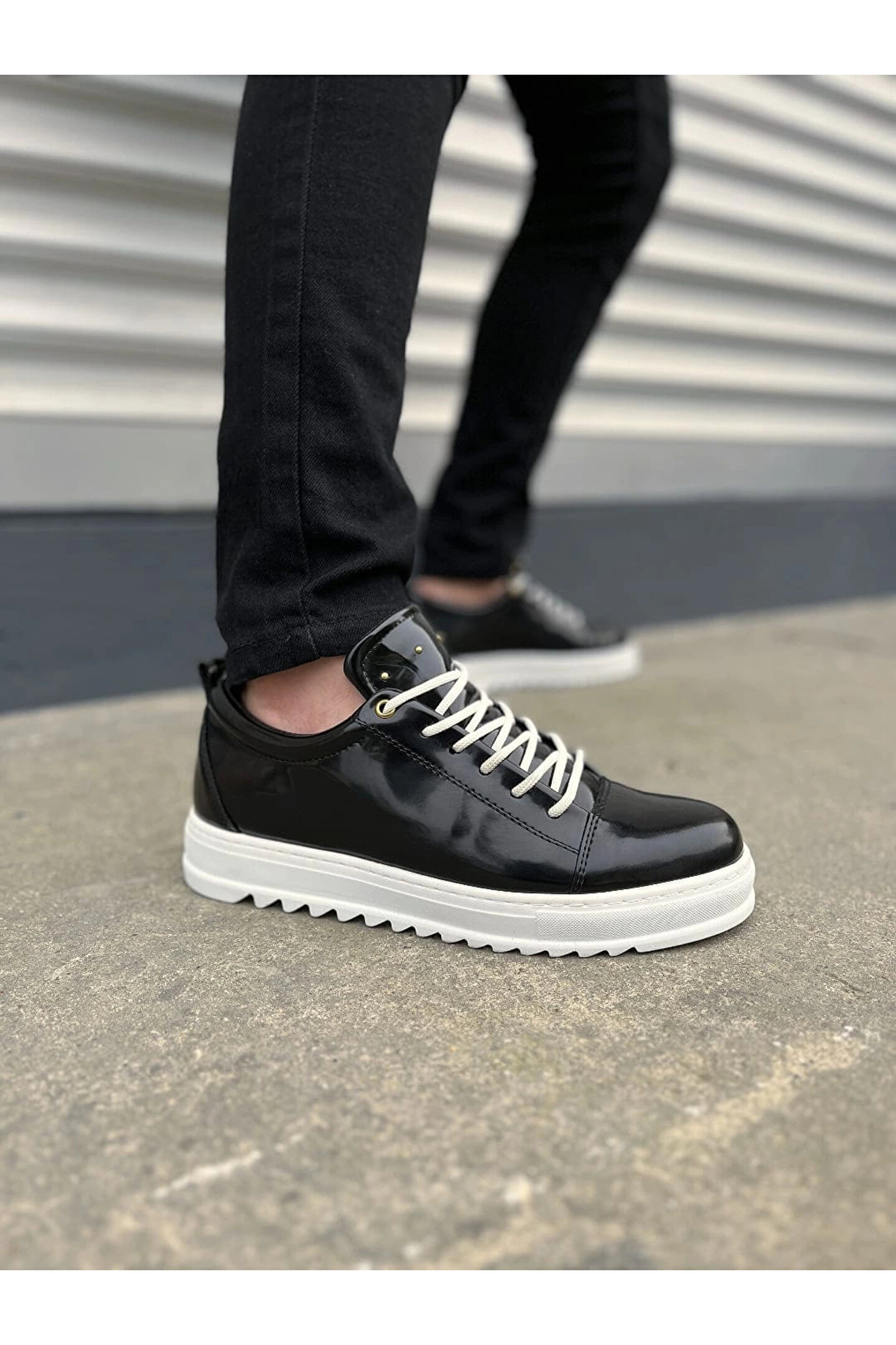 Joy Ayakkabı JY152 Cool Bağcıklı Rugan Erkek Günlük Spor Klasik Ayakkabı RBT - Siyah