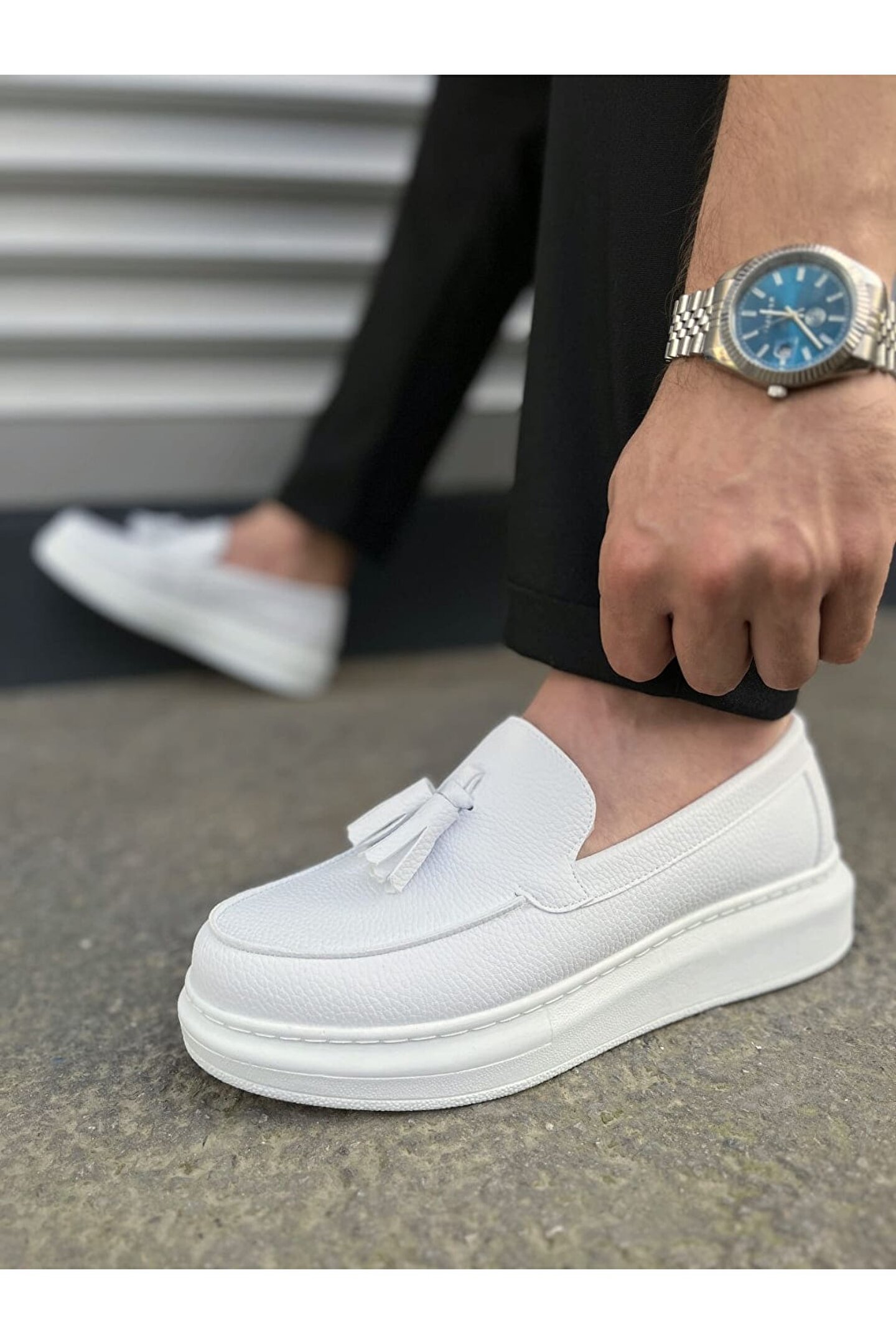 Joy Ayakkabı JY154 Blaze Bağcıksız Püsküllü Cilt Erkek Günlük Spor Klasik Ayakkabı CBT - Beyaz