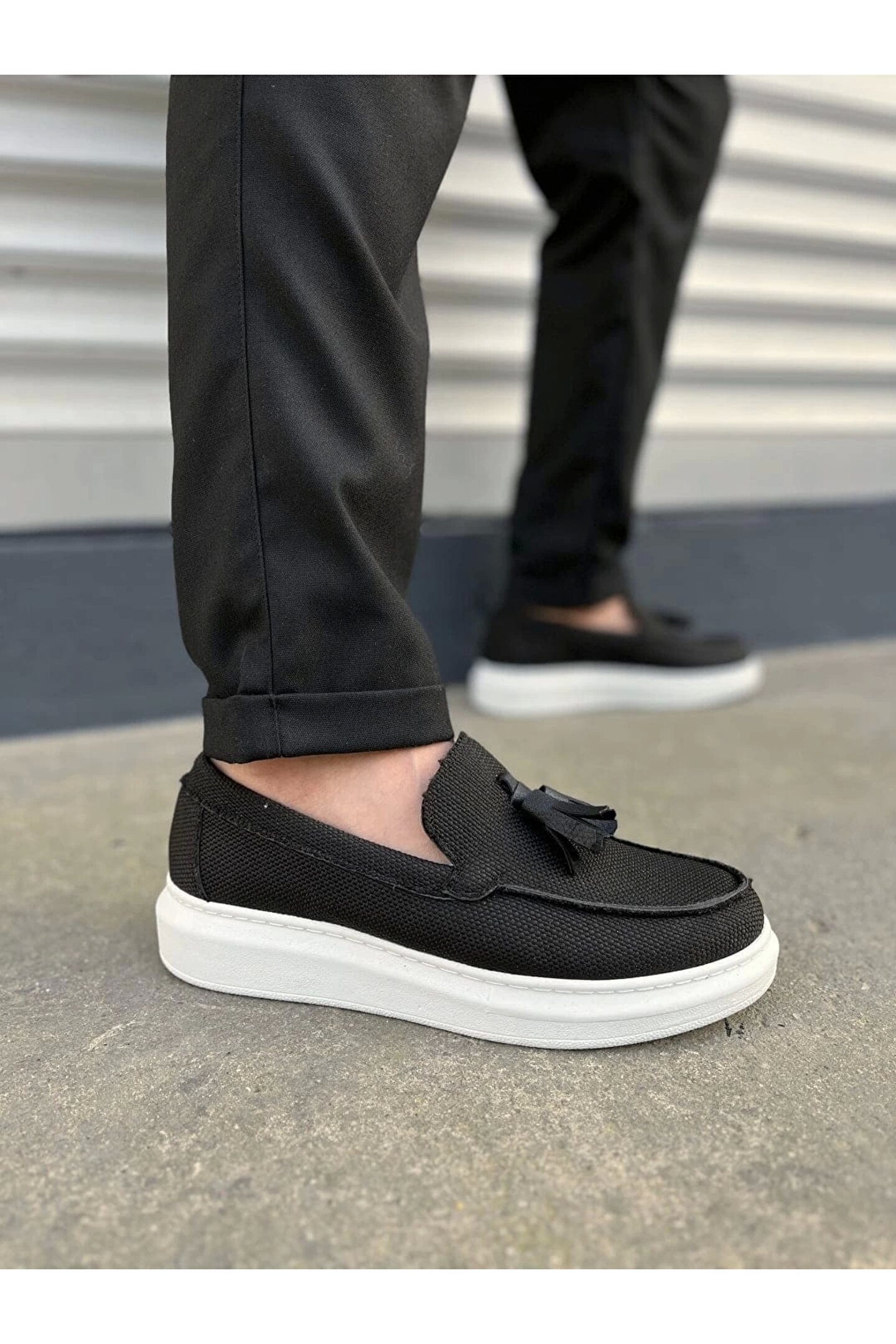Joy Ayakkabı JY154 Blaze Bağcıksız Püsküllü Keten Erkek Günlük Spor Klasik Ayakkabı KBT - Siyah
