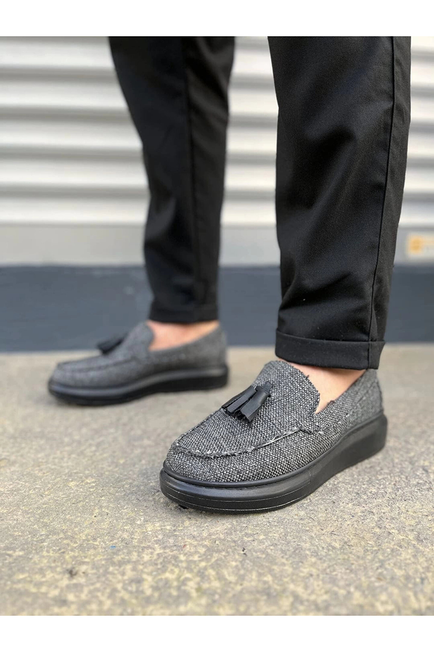 Joy Ayakkabı JY154 Blaze Bağcıksız Püsküllü Keten Erkek Günlük Spor Klasik Ayakkabı KST - Gri