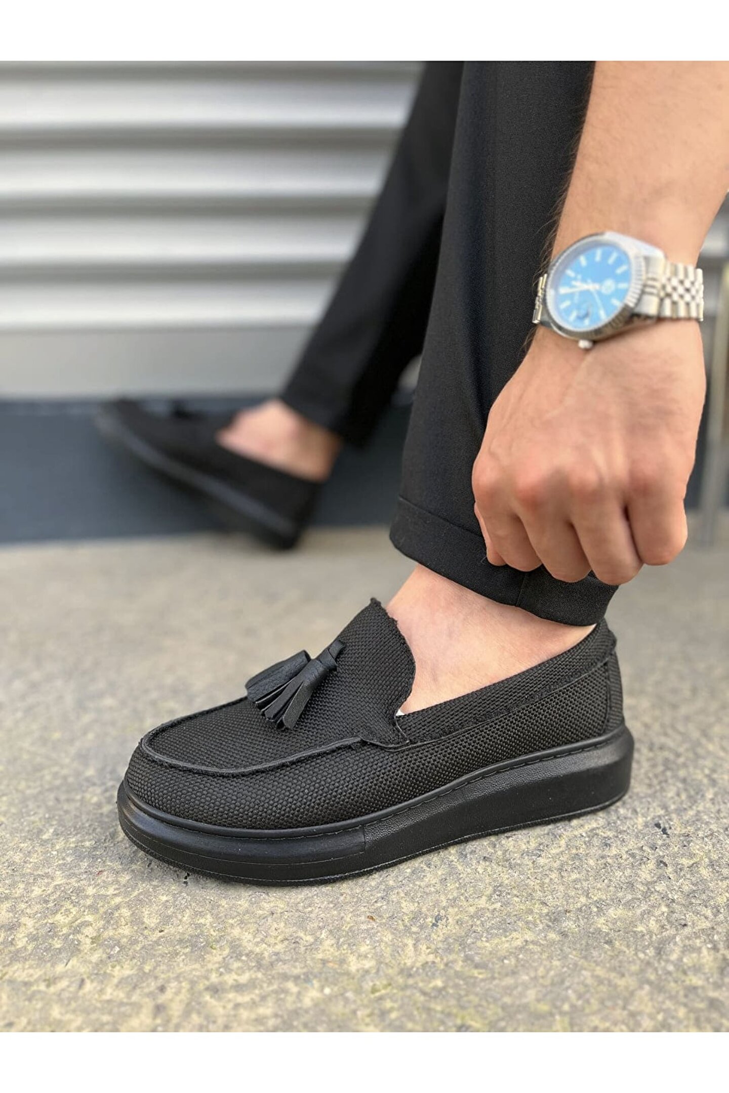 Joy Ayakkabı JY154 Blaze Bağcıksız Püsküllü Keten Erkek Günlük Spor Klasik Ayakkabı KST - Siyah
