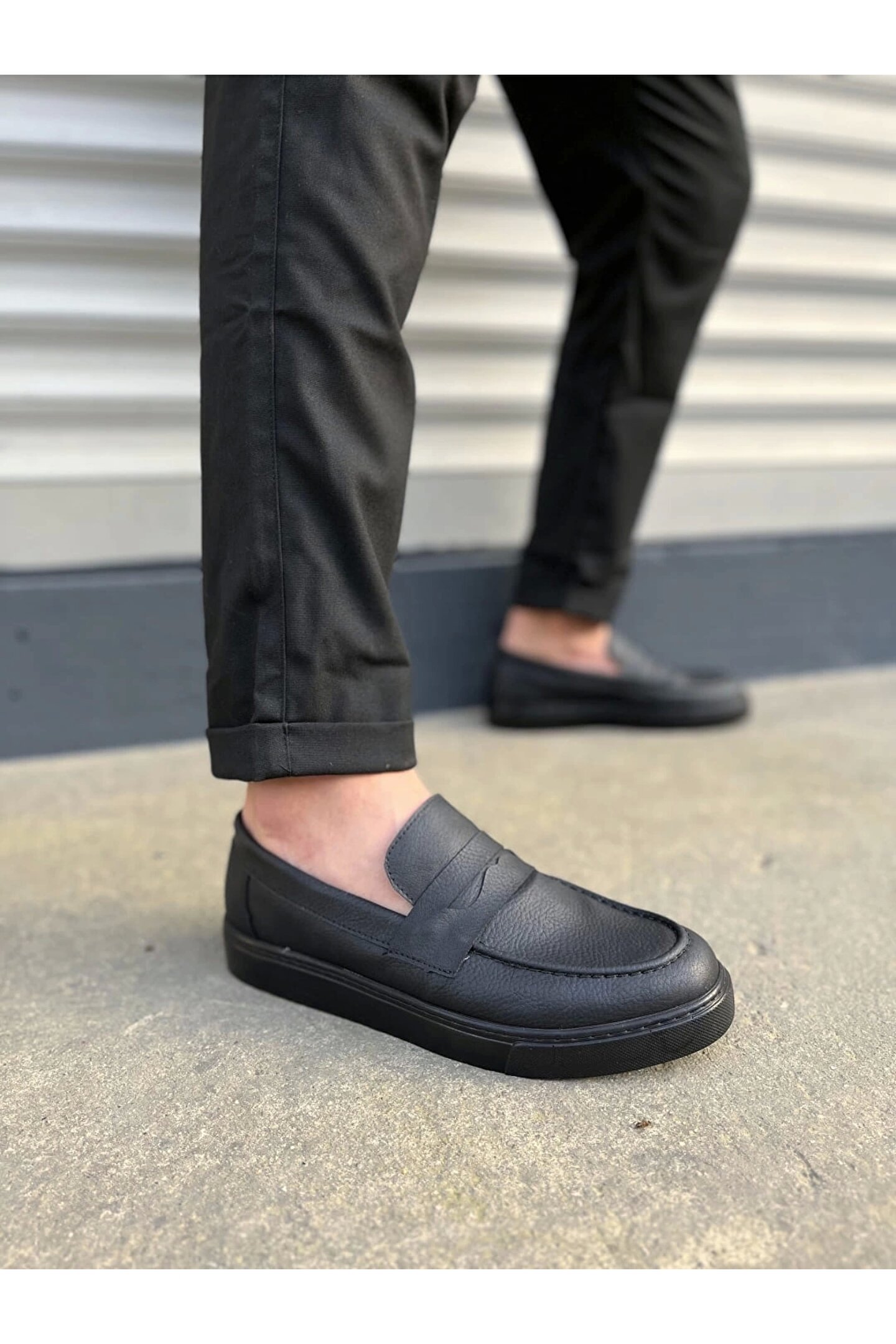 Joy Ayakkabı JY180 Estilo X Bağcıksız Cilt Erkek Günlük Spor Klasik Ayakkabı CST - Siyah
