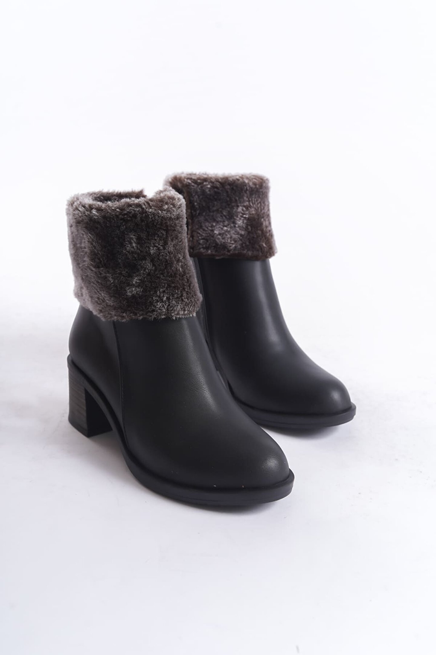 Joy Ayakkabı KATYA Fermuarlı Ortopedik Taban Topuklu Kürk DetaylıKadın Bot CST - Siyah