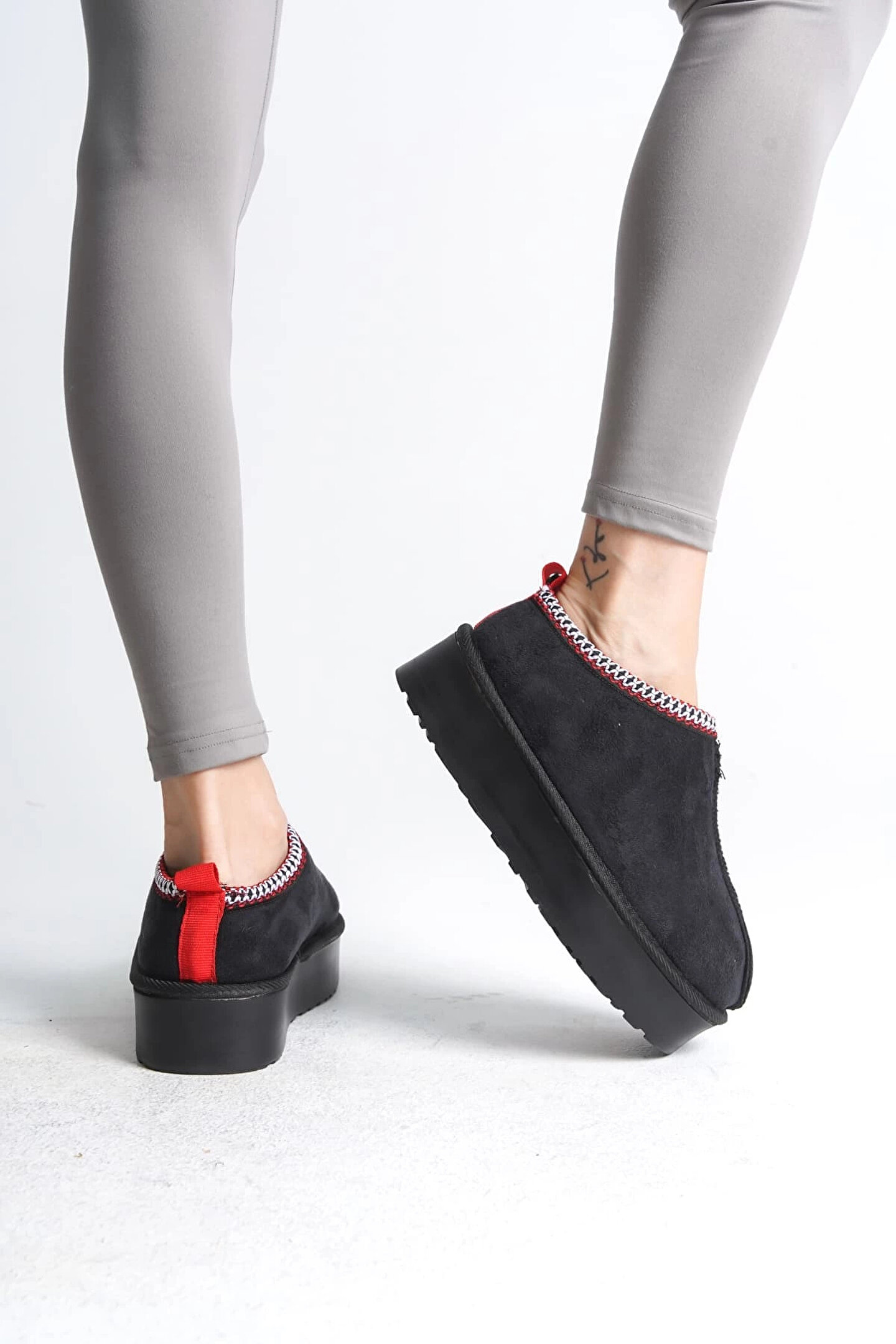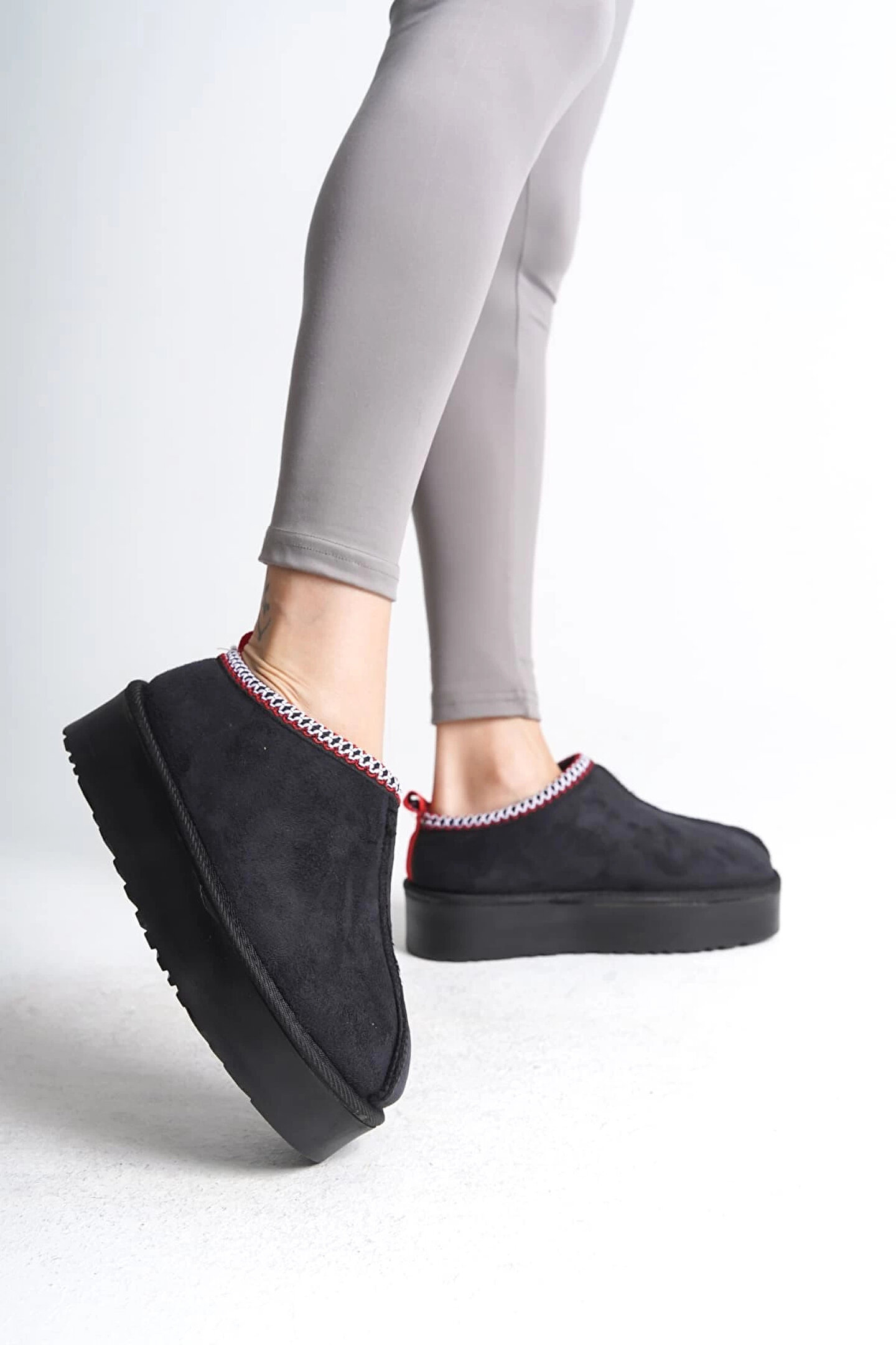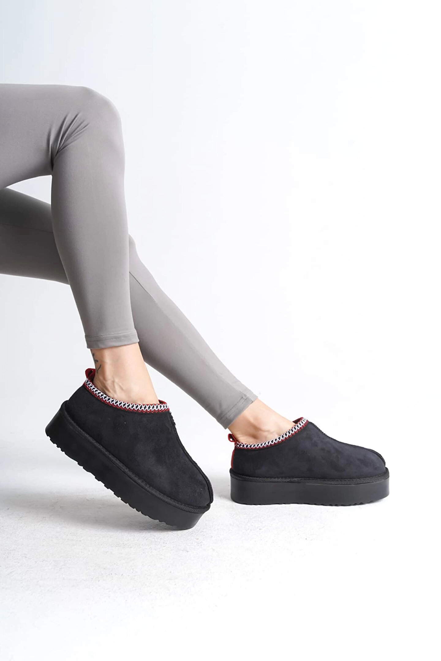 Joy Ayakkabı LEILA Bağcıksız Düz ve Kalın Taban İçi Kürklü Kısa Süet Kadın Bot SST - Siyah
