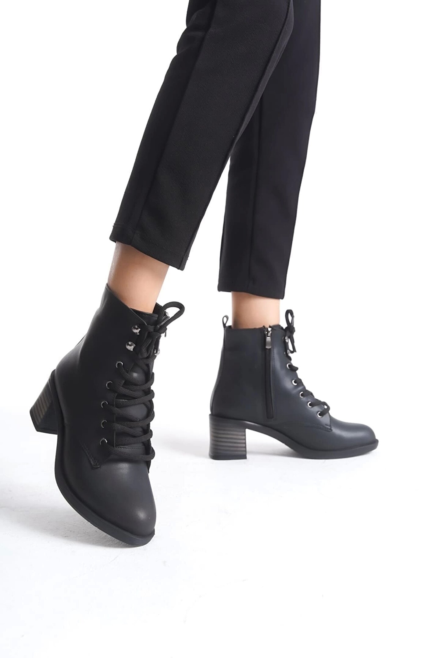 LENA Bağcıklı Fermuarlı Ortopedik Taban TopukluKadın Bot ST - Siyah