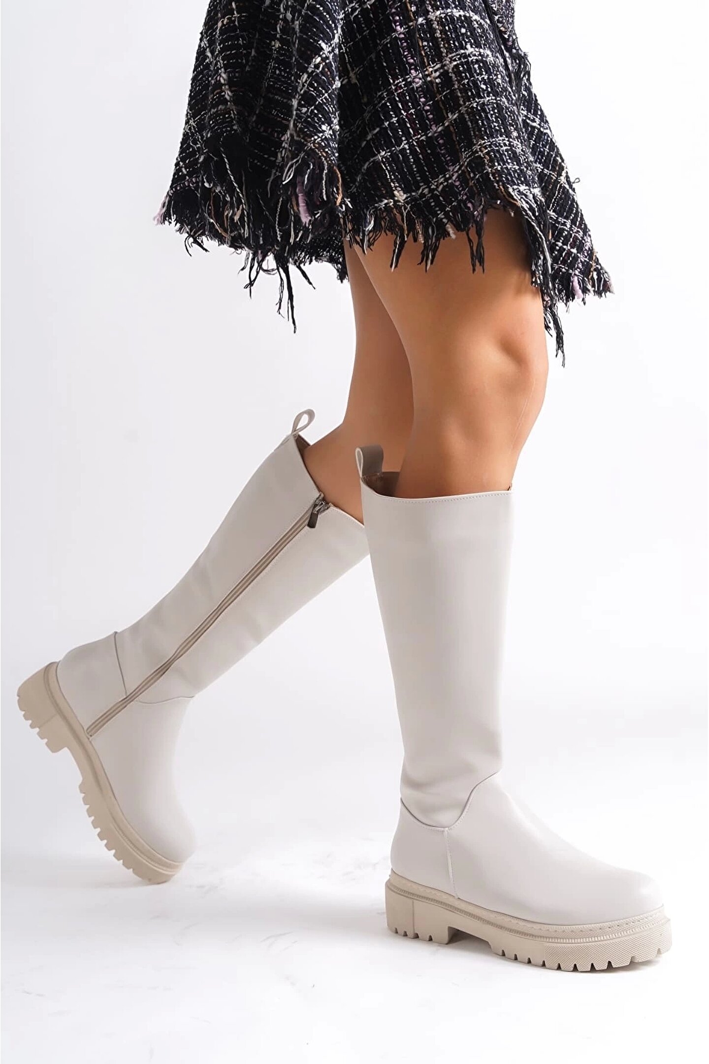 MIRA Bağcıksız Fermuarlı Ortopedik Taban Kadın Çizme CKT - Krem