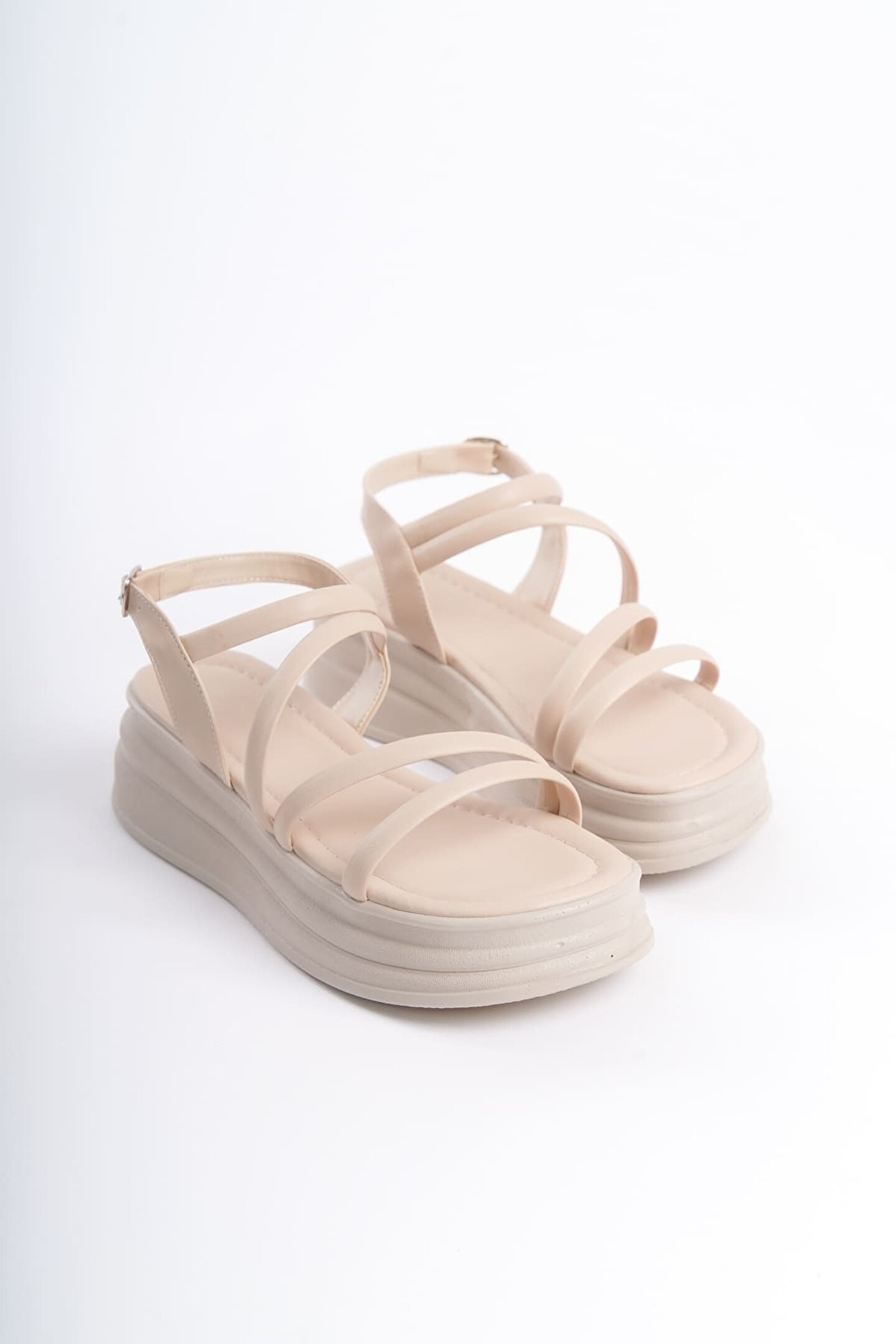 Joy Ayakkabı NATALIE İnce Tokalı Şerit Detaylı Ortopedik Taban Kadın Sandalet CKT - Krem