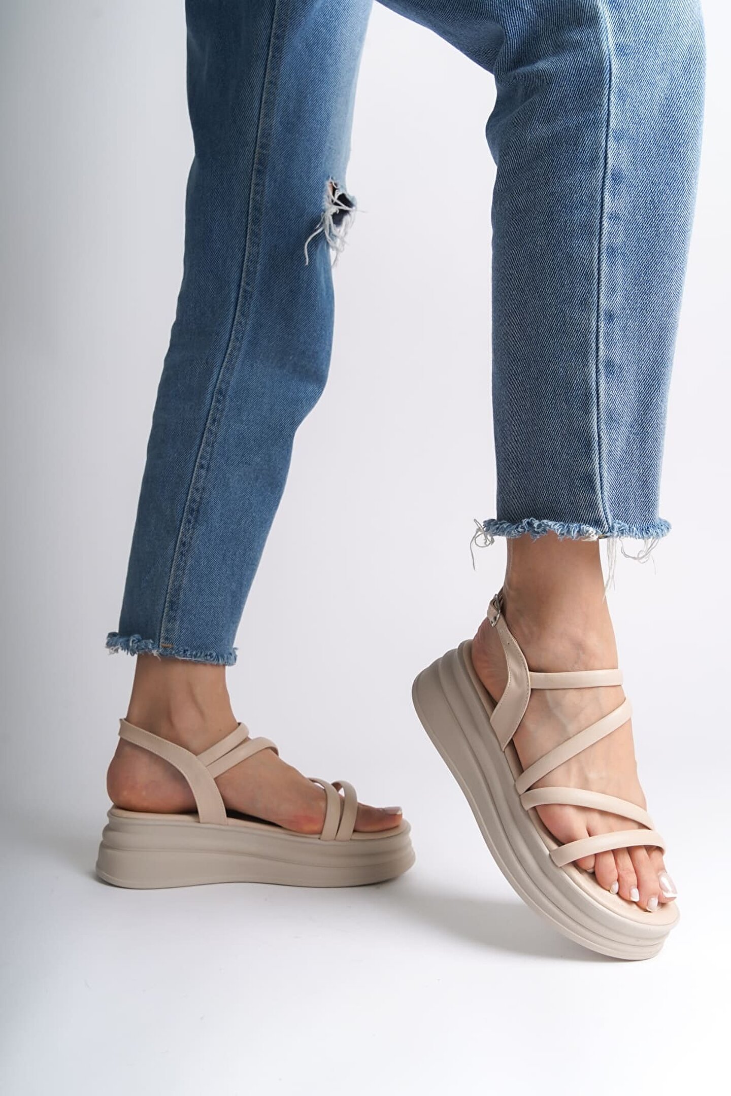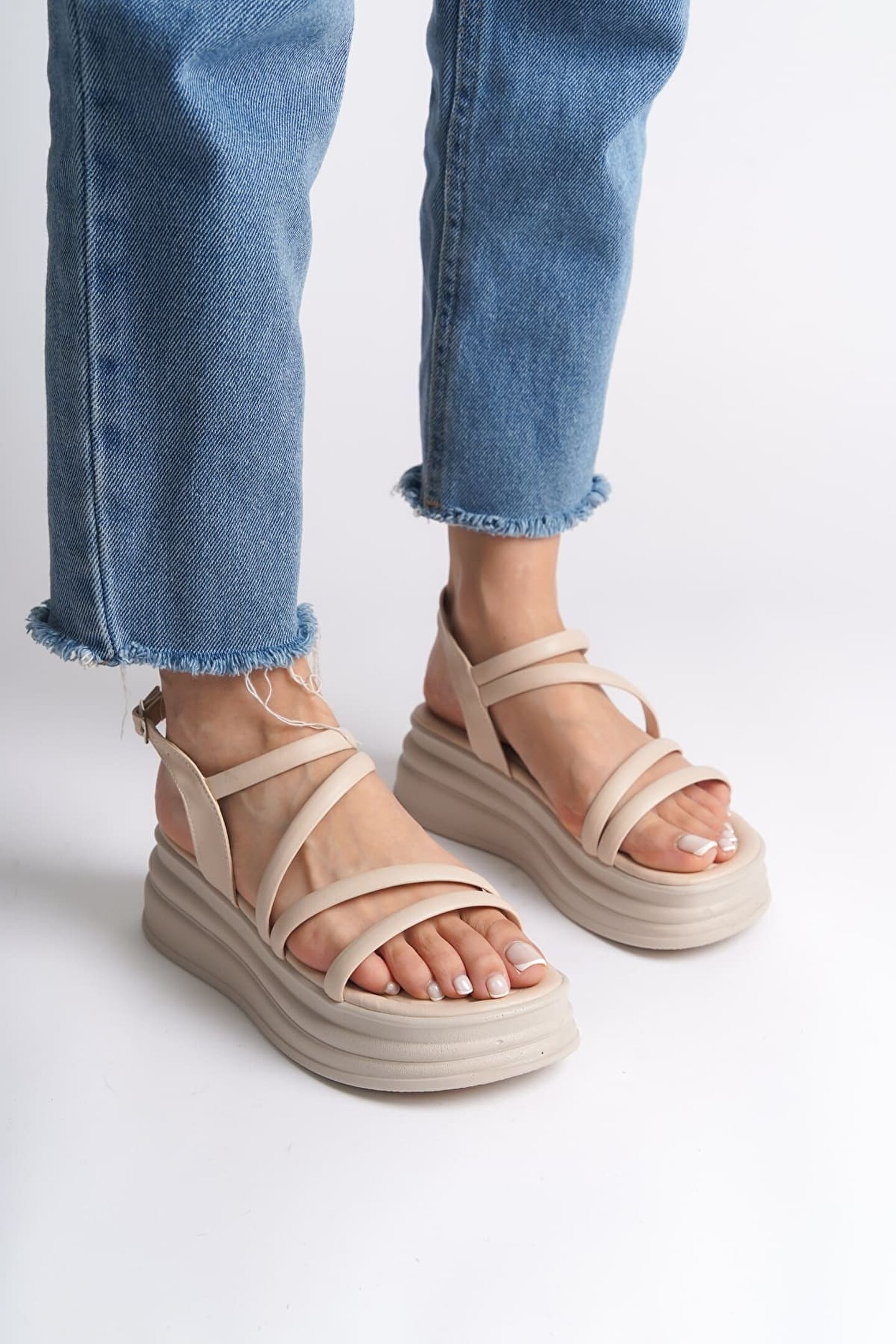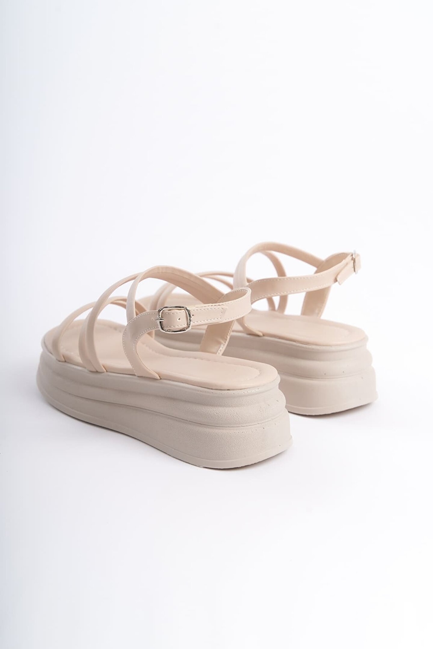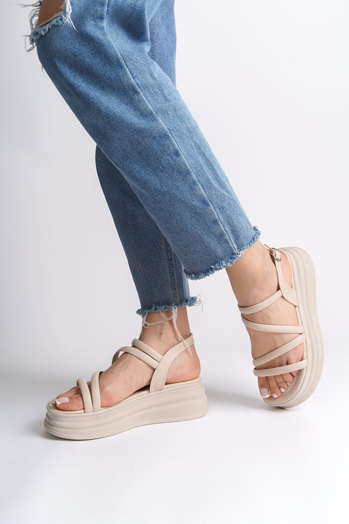Joy Ayakkabı NATALIE İnce Tokalı Şerit Detaylı Ortopedik Taban Kadın Sandalet CKT - Krem