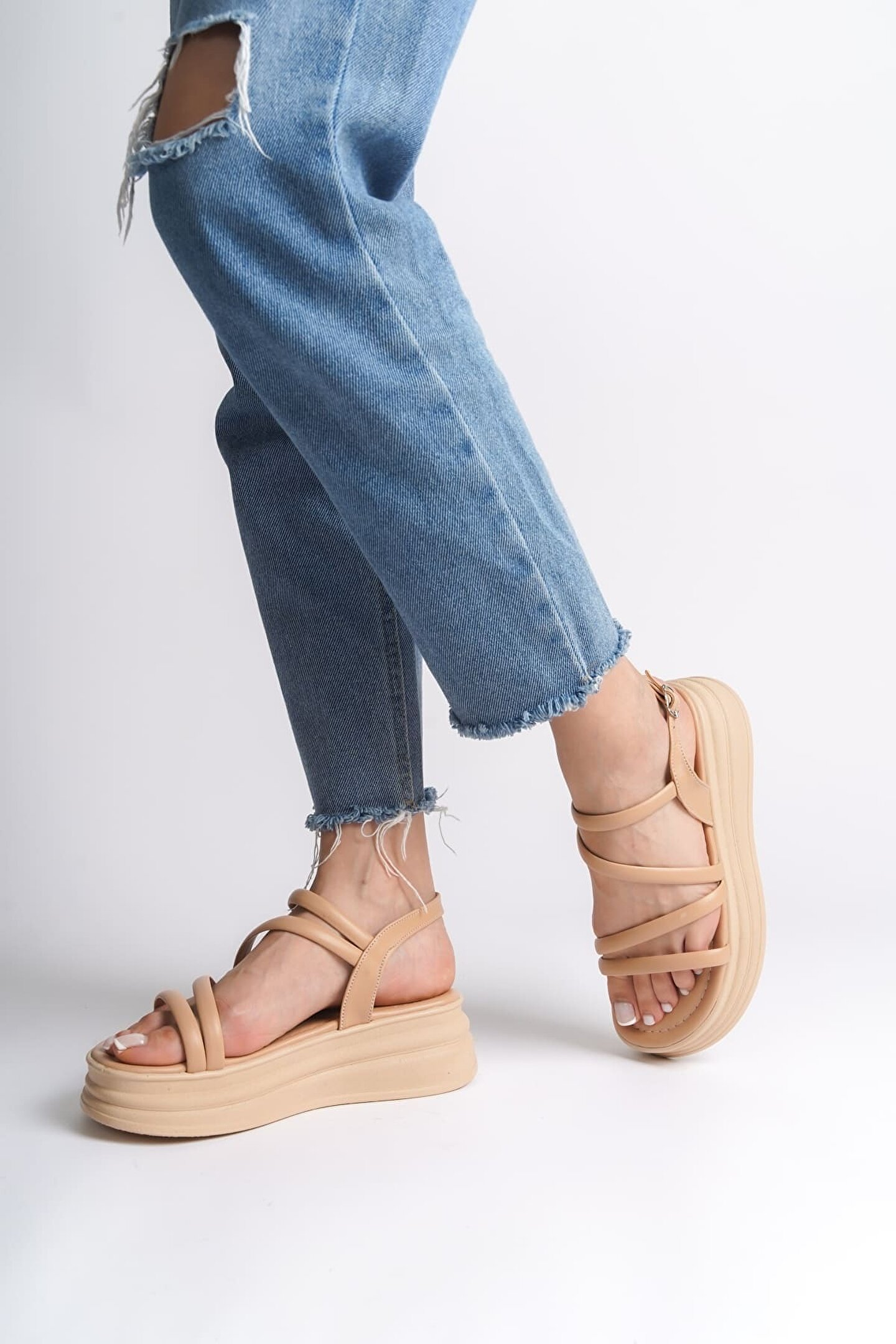 Joy Ayakkabı NATALIE İnce Tokalı Şerit Detaylı Ortopedik Taban Kadın Sandalet CTT - Ten