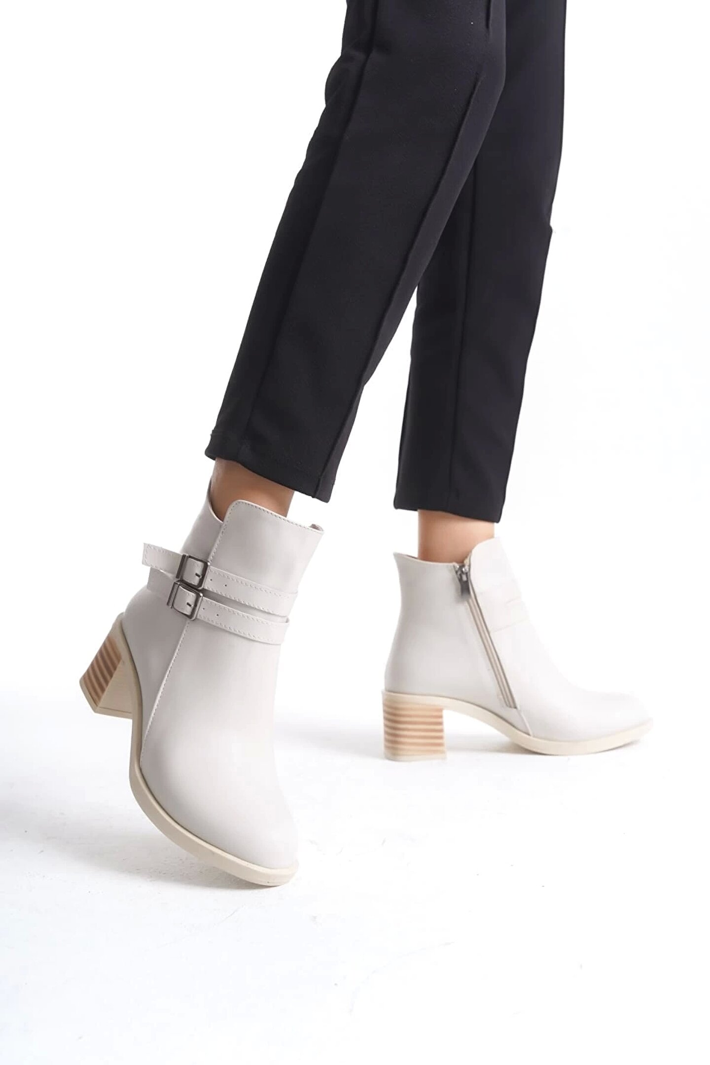 Joy Ayakkabı NOEMI Tokalı Fermuarlı Ortopedik Taban TopukluKadın Bot KT - Krem