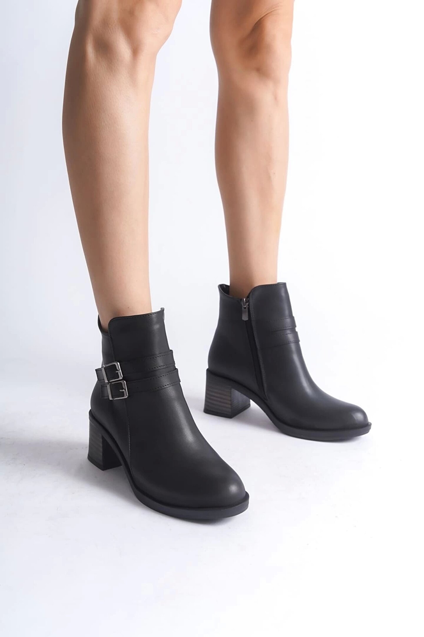 NOEMI Tokalı Fermuarlı Ortopedik Taban TopukluKadın Bot ST - Siyah
