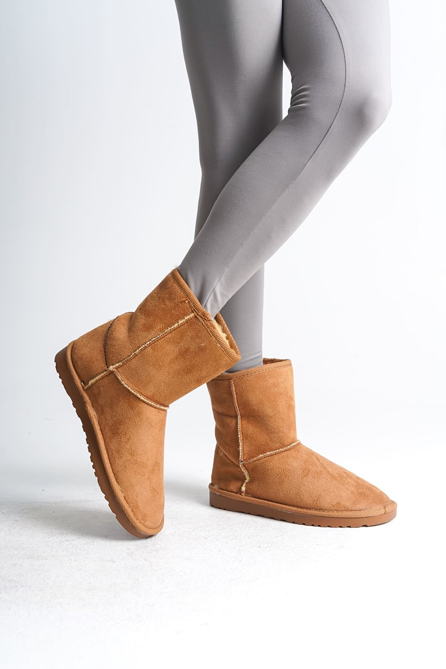 Joy Ayakkabı SELINA Bağcıksız Düz Taban İçi Kürklü Süet Kadın Bot - Taba