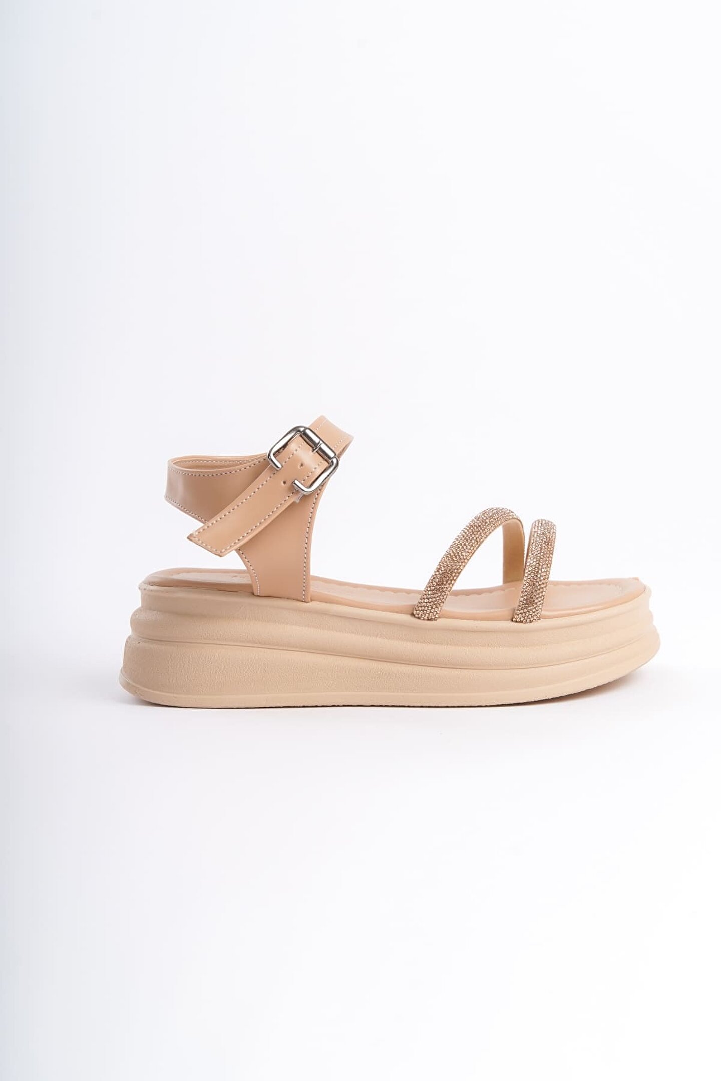 Joy Ayakkabı ZLOHE Kalın Tokalı Taşlı Şeritli Ortopedik Taban Kadın Sandalet CTT - Ten