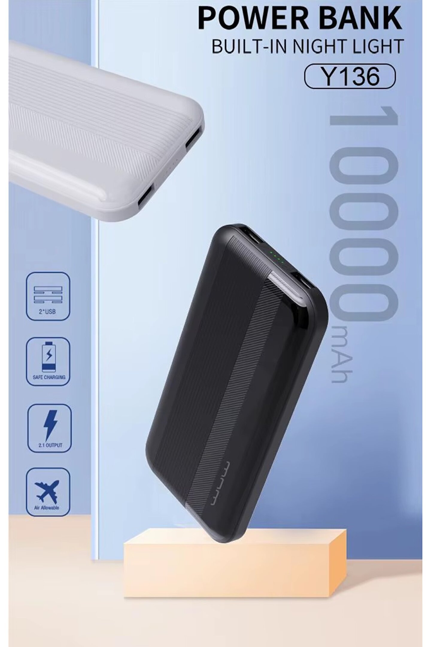 • 10000 MAH POWERBANK 2 USB ÇIKIŞLI TAŞINABİLİR ŞARJ ALETİ 5V-2,1A USB ÇIKIŞ LED IŞIK HEDİYELİ