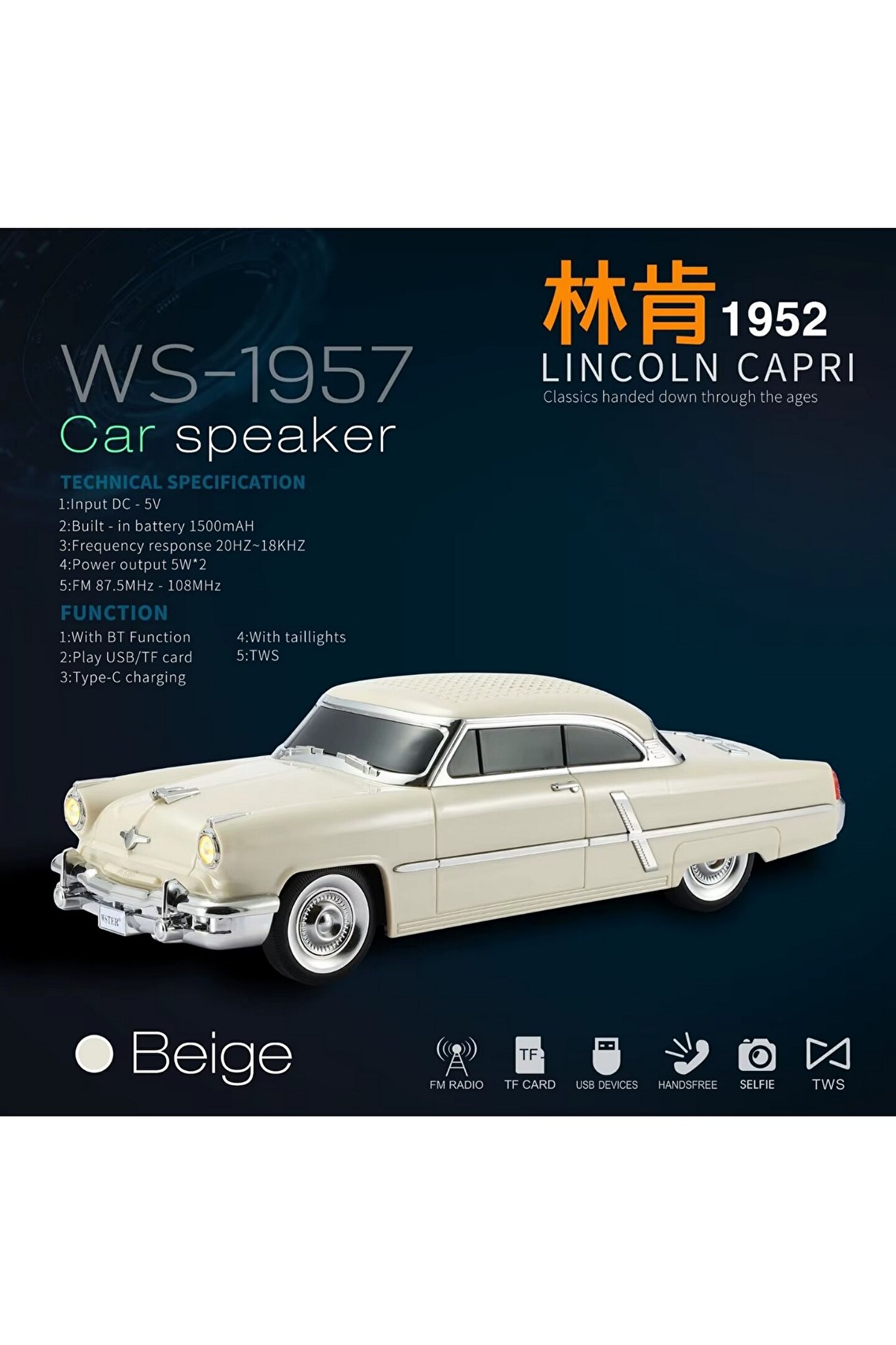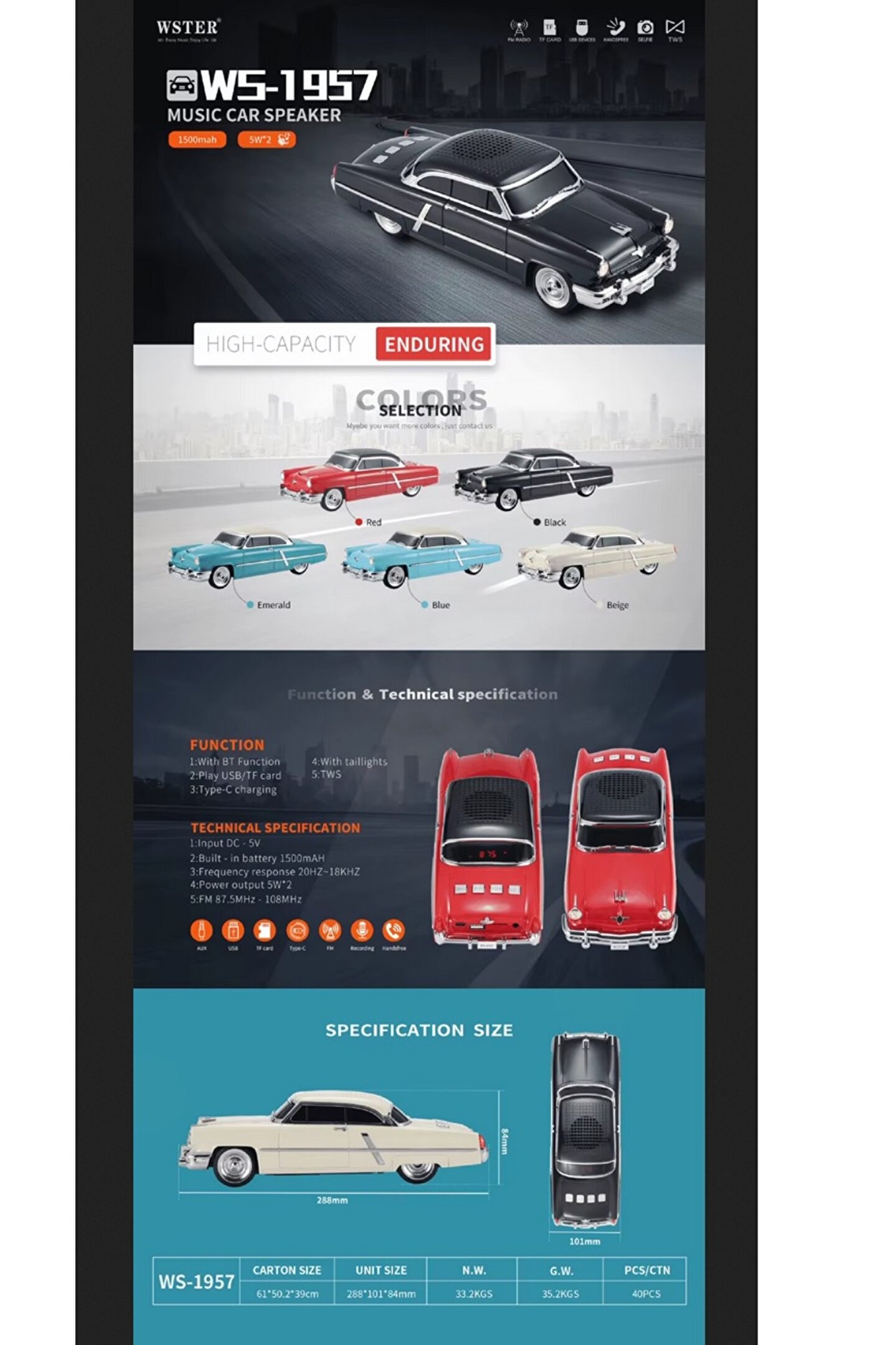 | Model No. | WS-1957 kablosuz araba modeli hoparlör |