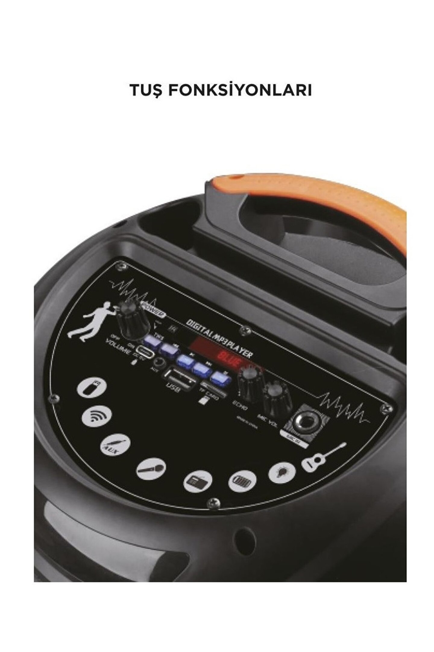 • 2X8 İNÇ BÜYÜK BOY TEKERLEKLİ BLUETOOTH SPEAKER ŞARJLI KABLOSUZ MİKROFONLU HOPARLÖR