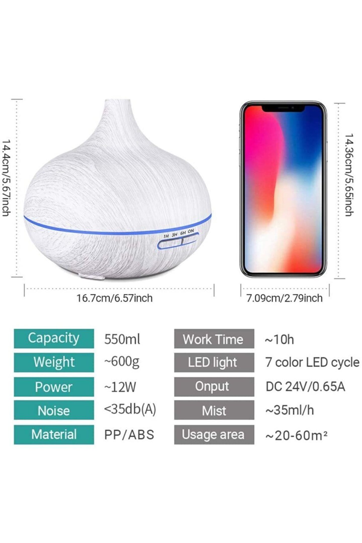 Nefes aroma difüzör. ; Hava nemlendirici aromatik uçucu yağ oda kokusu çözücü aroma difüzör. ; Koyu ahşap rengi. ; Uzaktan kumandalı. ; Priz ile çalışır. ; Şarjlı değildir. ; 1, 3 ve 6 saat zaman ayarlı otomatik kapanma. ; Ultrasonik. ; Sessiz çalışır. ; 7 renk dinlendirici led ışıklı. ; 500 ml su kapasitesi Hafif ve yoğun ışık ayarı. ; / istediğin renk ışıkta sabitleme. ; Hafif ve yoğun duman ayarı. ; Dışı güvenle kullanabileceğin 1. ; Sınıf abs plastik malzemeden ve iç su tankı pp malzemeden üretilmiştir. ; Ölçüler: 17 cm x 16,5 cm. ; / ağırlık: 450 gr. ; / 35 metrekare alana kadar etkili. ; Havayı tazeler, odanın kokusunu tatlılaştırır ve cildi nemlendirir. ; Doğal yogixo aromatik esanslarımız ile kullanıma uygundur. ; Statik elektriği ortadan kaldırmada ve bilgisayar ve telefonlardan kaynaklı radyasyonunu azaltmada faydalıdır. ; Aromaterapi yapmak, havayı nemlendirmek ve bakterileri temizlemek için suya birkaç damla aromatik koku koyman yeterlidir. ; Zarif tasarımı ve kullanım alanı ile yoga ve meditasyon stüdyolarında, evde, ofiste, spa, otel, vb. ; Yerlerde kullanıma uygundur. ; -2 yıl ithalatci firma garantili;