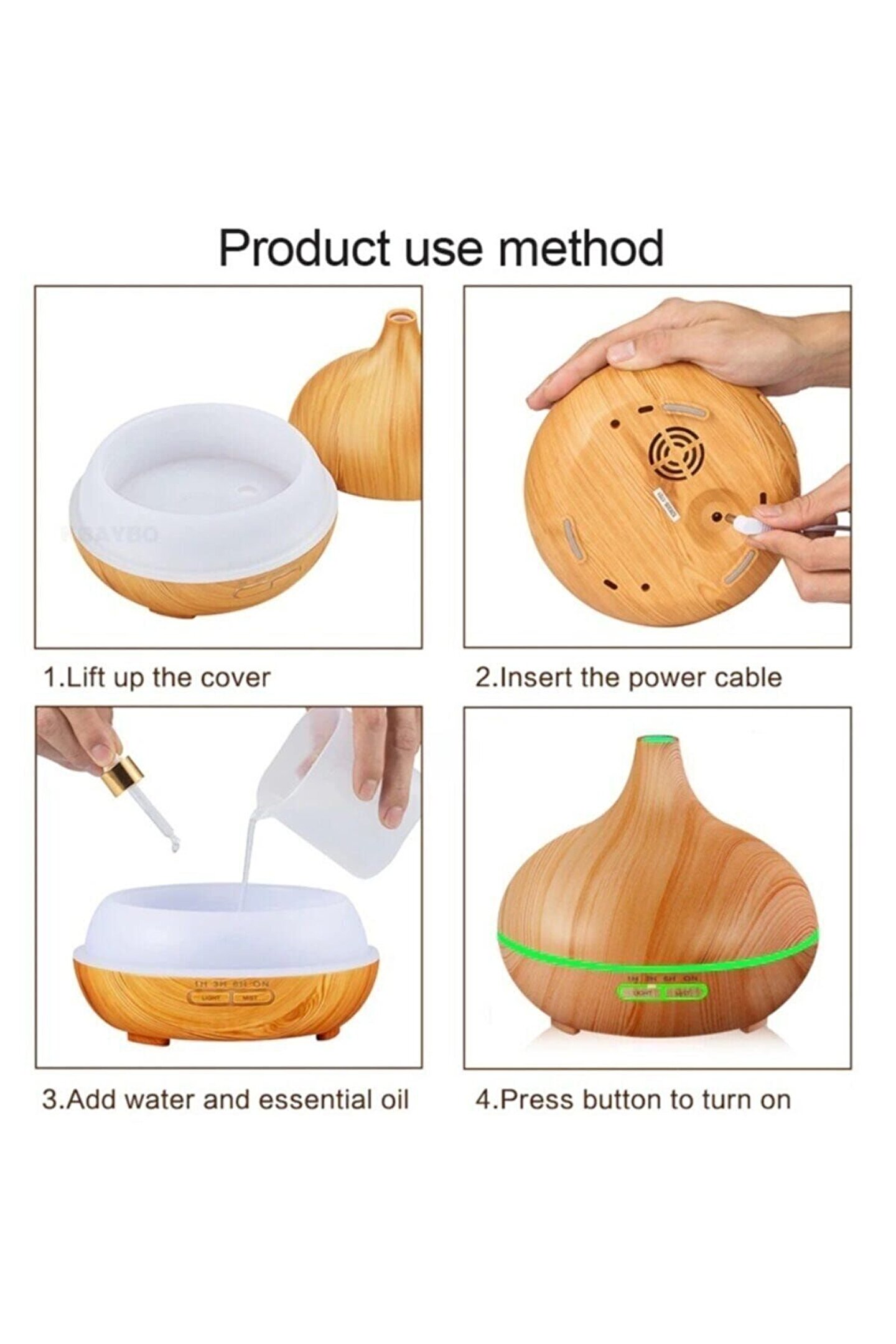 Nefes Aroma Difüzör. ; Hava Nemlendirici Aromatik Uçucu Yağ Oda Kokusu Çözücü Aroma Difüzör. ; Koyu Ahşap Rengi. ; Uzaktan kumandalı. ; Priz ile çalışır. ; Şarjlı değildir. ; 1, 3 ve 6 saat zaman ayarlı otomatik kapanma. ; Ultrasonik. ; Sessiz çalışır. ; 7 Renk dinlendirici Led ışıklı. ; 500 ml su kapasitesi Hafif ve yoğun ışık ayarı. ; / İstediğin renk ışıkta sabitleme. ; Hafif ve yoğun duman ayarı. ; Dışı güvenle kullanabileceğin 1. ; sınıf ABS Plastik malzemeden ve iç su tankı PP malzemeden üretilmiştir. ; Ölçüler: 17 cm x 16,5 cm. ; / Ağırlık: 450 gr. ; / 35 metrekare alana kadar etkili. ; Havayı tazeler, odanın kokusunu tatlılaştırır ve cildi nemlendirir. ; Doğal Yogixo aromatik esanslarımız ile kullanıma uygundur. ; Statik elektriği ortadan kaldırmada ve bilgisayar ve telefonlardan kaynaklı radyasyonunu azaltmada faydalıdır. ; Aromaterapi yapmak, havayı nemlendirmek ve bakterileri temizlemek için suya birkaç damla aromatik koku koyman yeterlidir. ; Zarif tasarımı ve kullanım alanı ile yoga ve meditasyon stüdyolarında, evde, ofiste, spa, otel, vb. ; yerlerde kullanıma uygundur. ; --2 yıl ithalatci firma garantili...;