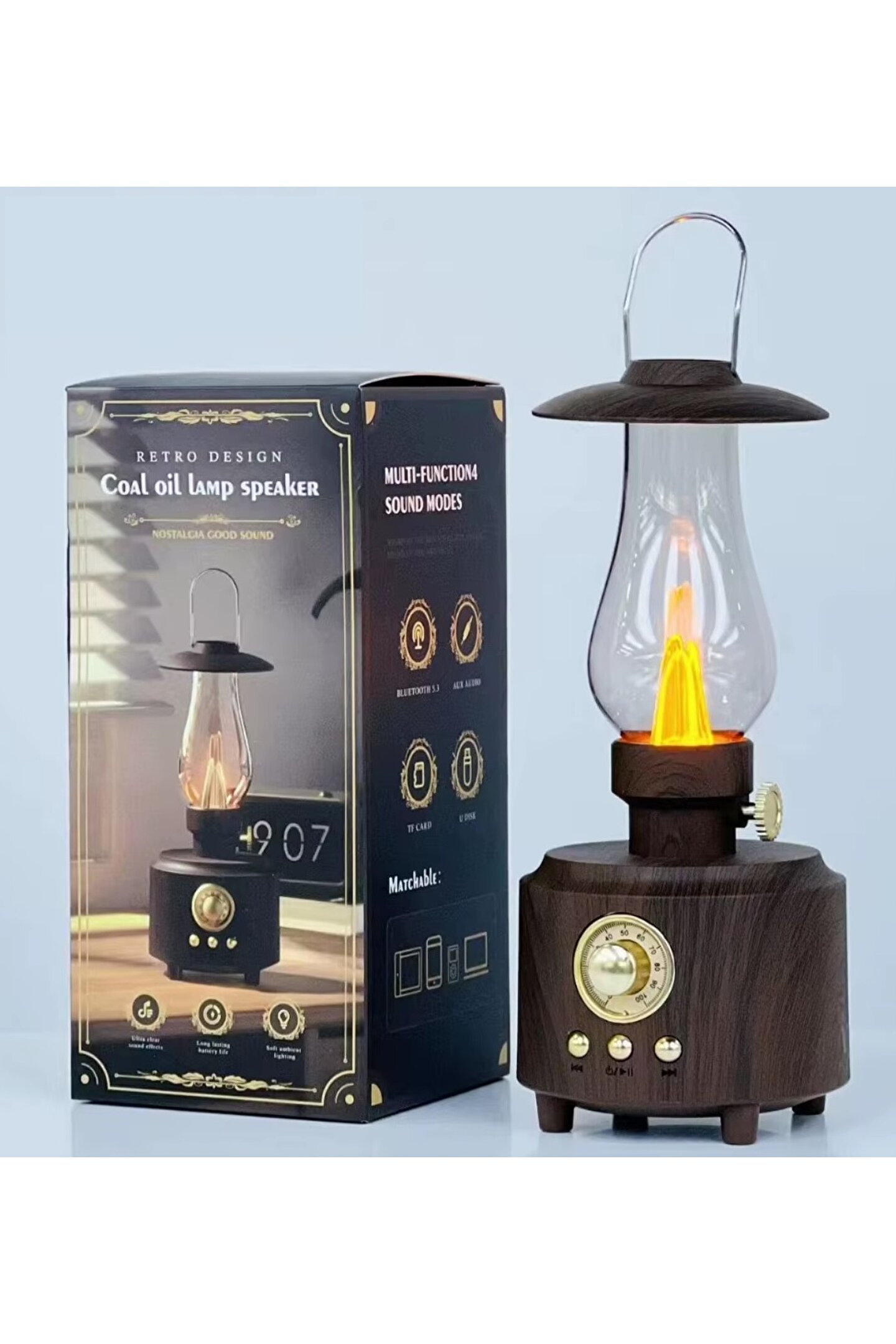 Model C-210 Öğe adı C-210 gazyağı lambası hoparlör Renkler Ahşap tahıl, yeşil, pembe, beyaz Retro Bluetooth hoparlör taşınabilir kablosuz müzik Soundbox klasik gazyağı lambası tasarım Hifi MP3 müzik çalar ev kamp için Güçlü dayanıklılık Dahili 1200mAh lityum pil ile donatılmış, tamamen şarj olduğunda uzun-uzun ömürlü pil hayat sağlar, müzik keyfini ve dünyayı dinlemenizi sağlar.; Bluetooth 5.0 yükseltme Bluetooth 5.0 teknolojisini, CD kalitesinde Bluetooth iletimini, güçlü anti-paraziti, yüksek stabilite bağlantısını ve ücretsiz dinlemeyi yükseltin.; Taşınabilir kılıf, Uygun depolama, ev, seyahat ve kamp için yardımcı asistan, harika bir açık hava zamanının tadını çıkarır.; Retro tarzı Geleneksel estetiğe övgü Zarif detaylar ve işçilik ile retro gazyağı lambasının klasik tasarımı, hem görünümü hem de sesi birleştirir.; Ürün parametreleri Işık kaynağı türü: sonsuz karartma Renk sıcaklığı: 1600K -1800K Bluetooth sürümü: Bluetooth v5.0 Bluetooth mesafesi: 8M (çevresel faktörlere ve Bluetooth cihazlarına bağlı olarak değişir) Ürün boyutu: 110*270mm Ürün ağırlığı: 500g (yaklaşık bir Apple telefon ağırlık) Şarj yöntemi: USB arayüzü (5V-1A) Anma gücü: 0.2W Frekans yanıtı: 2.4HZ Pil kapasitesi: 1200 mA Şarj süresi: yaklaşık 4 saat Oynatma süresi: 10 saat (70% 'de hacim ölçümü için referans değeri) Su geçirmez sınıf: PX4 anti sıçrama suyu Işık anahtarı ? Işığı zayıftan güçlü bir şekilde açmak için düğmeyi saat yönünde çevirin ve ışığı güçlü ve zayıf bir şekilde açmak için düğmeyi saat yönünün tersine çevirin ? Cihazı açmak için Bluetooth düğmesine 3 saniye basın ve basılı tutun ve cihazı açmak için sesli yayın ? Cihaz (LA-0906) başarıyla eşleştirildikten sonra, ses yayını eşleştirme bağlantısının başarılı olduğunu bildirir ? Müzik çalmak veya duraklatmak için müzik modunda Bluetooth düğmesine kısa basın ? Kısa müzik çalmak veya duraklatmak için müzik modunda Bluetooth düğmesine basın Ambalaj listesi: 1 * Bluetooth hoparlör 1 * şarj kablosu