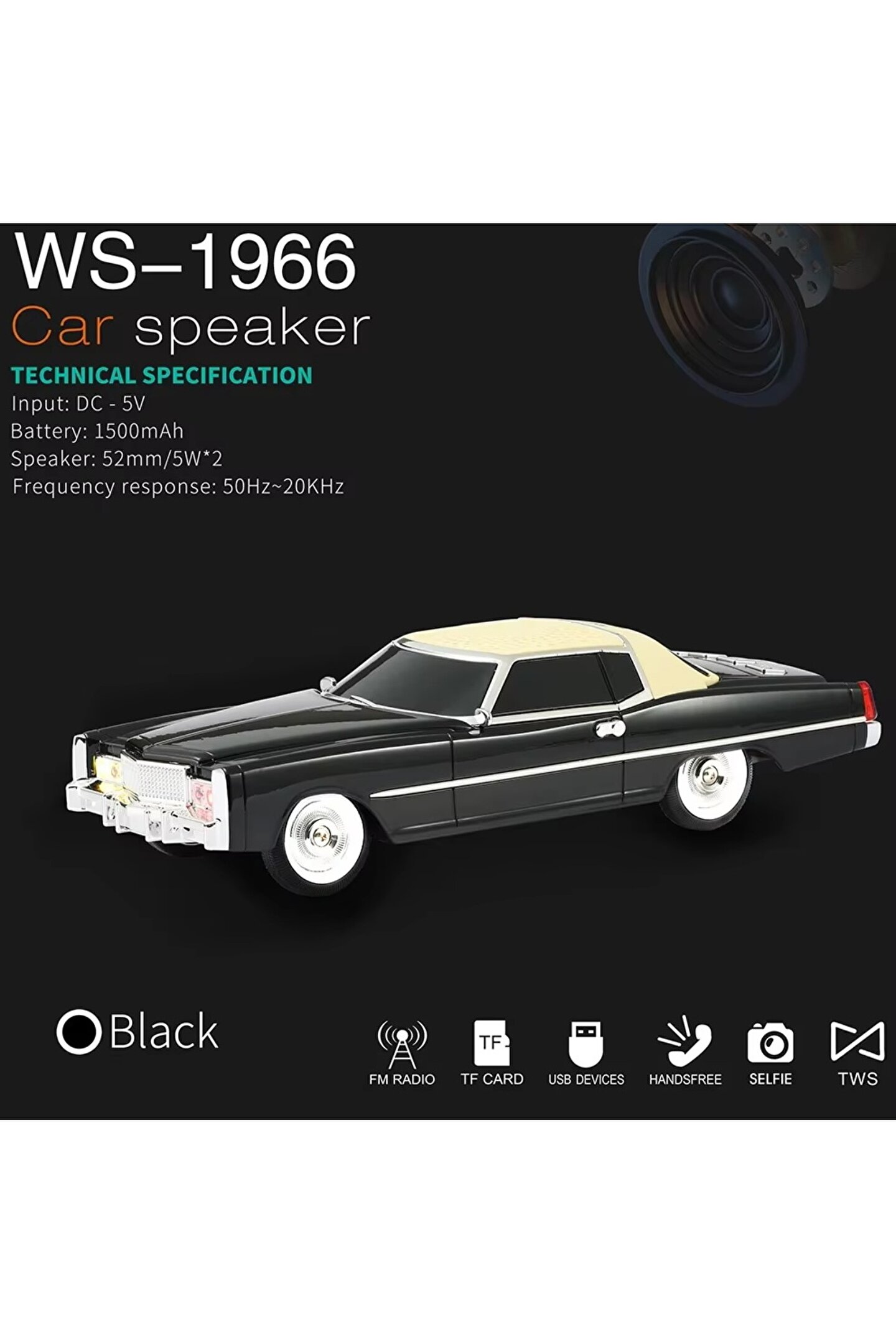 WS-1966 Vintage Kablosuz Masaüstü Bluetooth Hoparlör Cadillac Klasik Araba Tasarımı FM Radyo Desteği ile Taşınabilir TF Kart AUX TWS