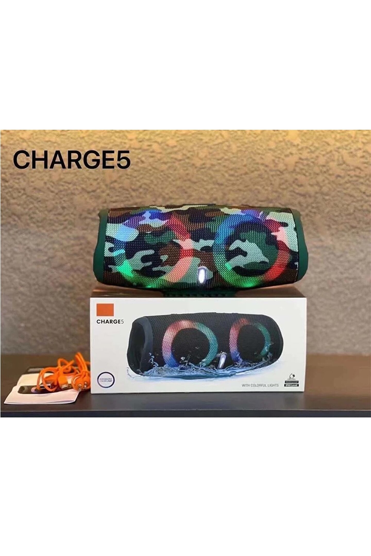 Ürün AçıklamasıÜrün adı Renkli RGB Işıklı Charge 5 10w Bluetooth 5; 0 Taşınabilir HoparlörBluetooth sürümü V5; 0Fonksiyon desteği ahizesiz arama/TF kartı/USB flash sürücü/FM radyodahili Mikrofon EvetFrekans 150HZ; 18KHZHoparlör çıkışı: 5W*2SNR ?85dbBozulma ?%0,3Şarj voltajı DC5VGiriş bağlantıları 3,5 mmPil Dahili 1200mAh lityum pilÇalışma Gerilimi 3; 3~4; 5VMuhafaza Malzemesi ABSRenk Siyah, Gri, YeşilAksesuarlar Şarj kablosu, Yardımcı giriş kablosu, MikrofonPaket Renk kutusu, özelleştirilmiş paket desteğiŞarj süresi ~ 2 saatOynatma süresi ~ 2; 4 saatBluetooth menzili 10mÜrün boyutu 222*94*97MM;