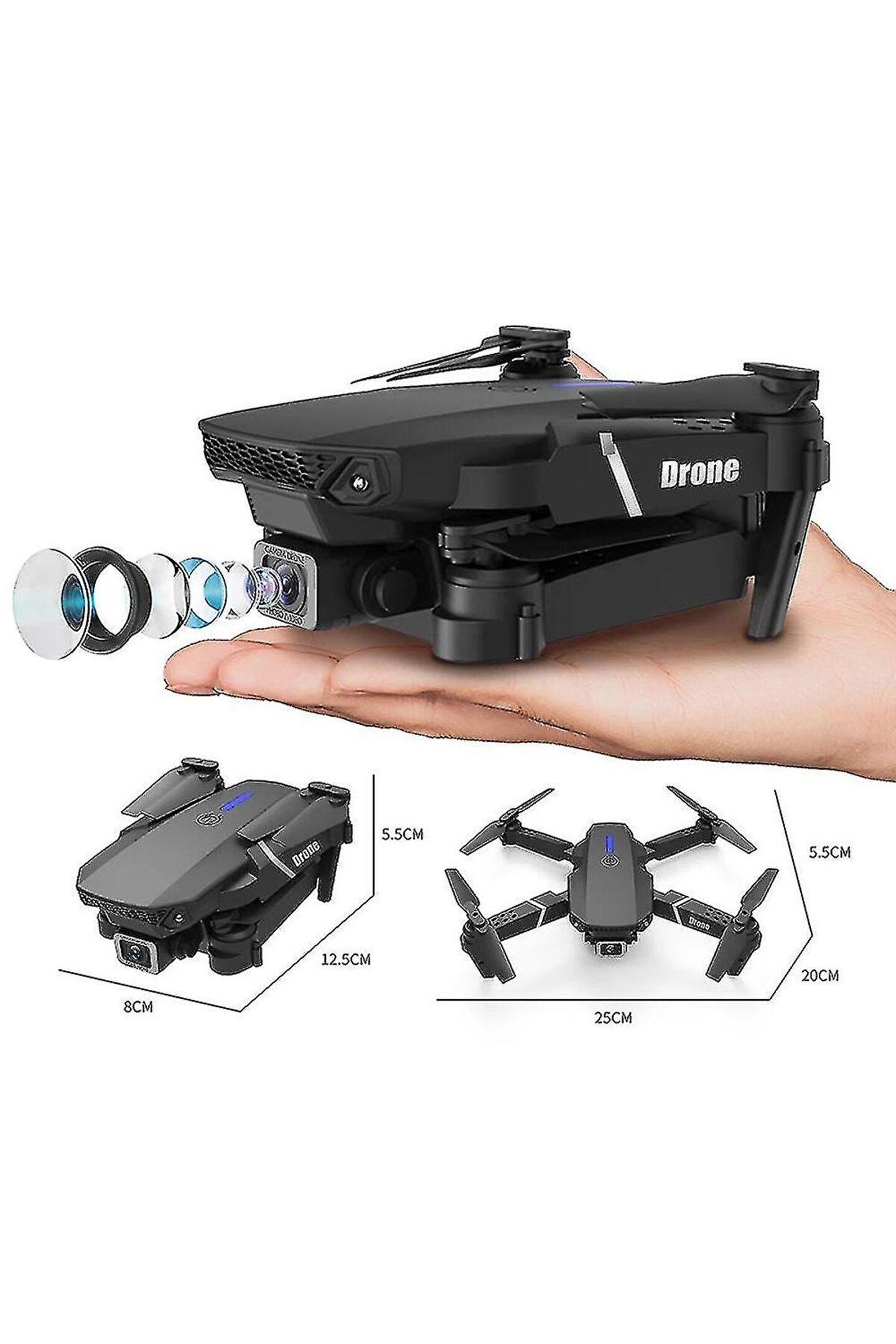 Çift kameralı drone 4k hava quadcopter 2; 4g kızılötesi rc ışıklı katlanabilir drone wifi Ürün parametreleriboykatlama: 16x16x5cmgenişlet: 32x32x5cm Renksiyah, turuncuuçuş fonksiyonutamamen katlanabilir gövde, Gece uçuş ışıkları, yüksek çözünürlüklü 8k kamera, modüler pil, Ayarlanabilir hız, tek tuşla dönüş, tek tuşla kalkış ve iniş, acil durdurma, 360 dönüş,yörünge uçuşu, yerçekimi indüksiyonu, mv üretimi, Esc lensin 50x yakınlaştırmasımercek parametreleri6k/8k hd kamerapili kullan Gövde pili: 3; 7v 1800mah lityum pilkontrol metodu Uzaktan kumandayı, cep telefonu uzaktan kumandasını kullanın (hava fotoğrafçılığı işlevi) Pil ömrüyaklaşık 18; 20 dakikauzaktan kumanda mesafesiyaklaşık 100 metre;