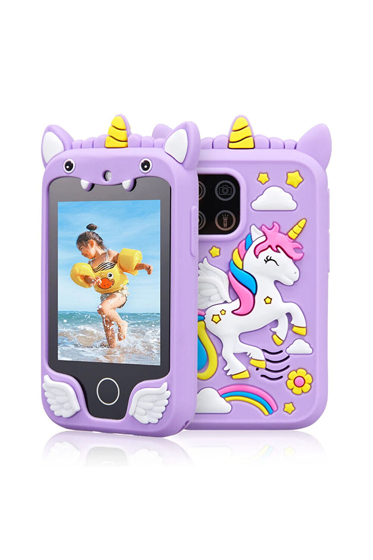 2.8 İnç Karikatür Hayvan Çift Lensli Dokunmatik Ekranlı Çocuk Kamerası Oyuncak Telefon Dahili Oyunlar - Pembe Tek Boynuzlu At