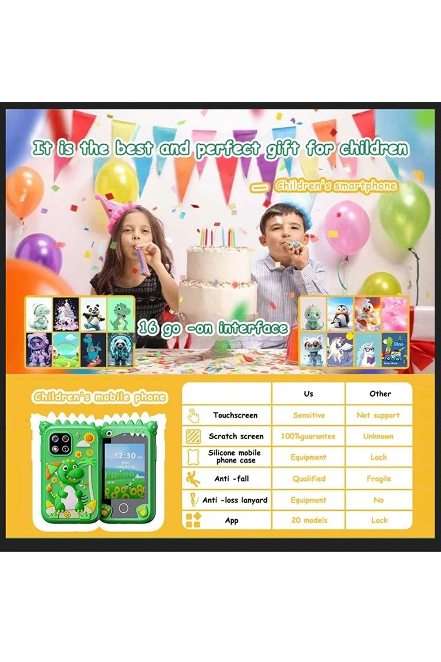 ?Çok İşlevli Eğlence?Çocukları eğlendirmek ve öğretmek için kamera, müzik, ses kaydedici, oyunlar, el feneri, çalar saat ve daha fazlasını içerir