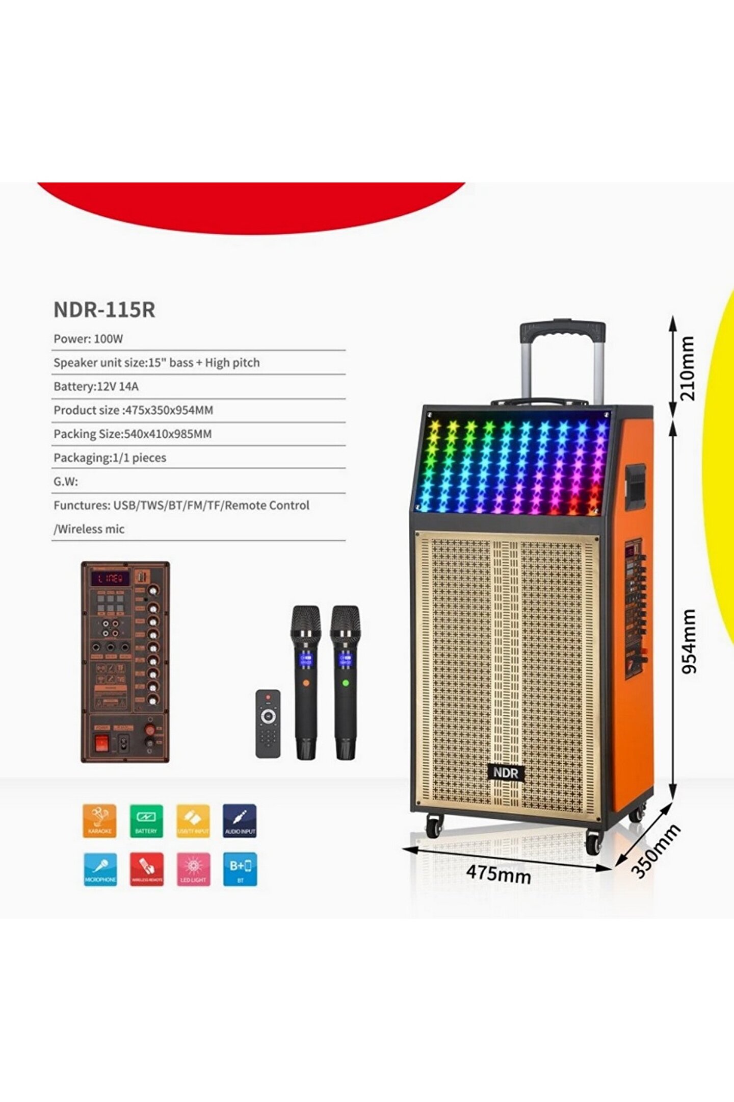 Fonksiyonlar USB, TF,FM, Bluetooth, Ekran, TWS, Karaoka,Led Işık