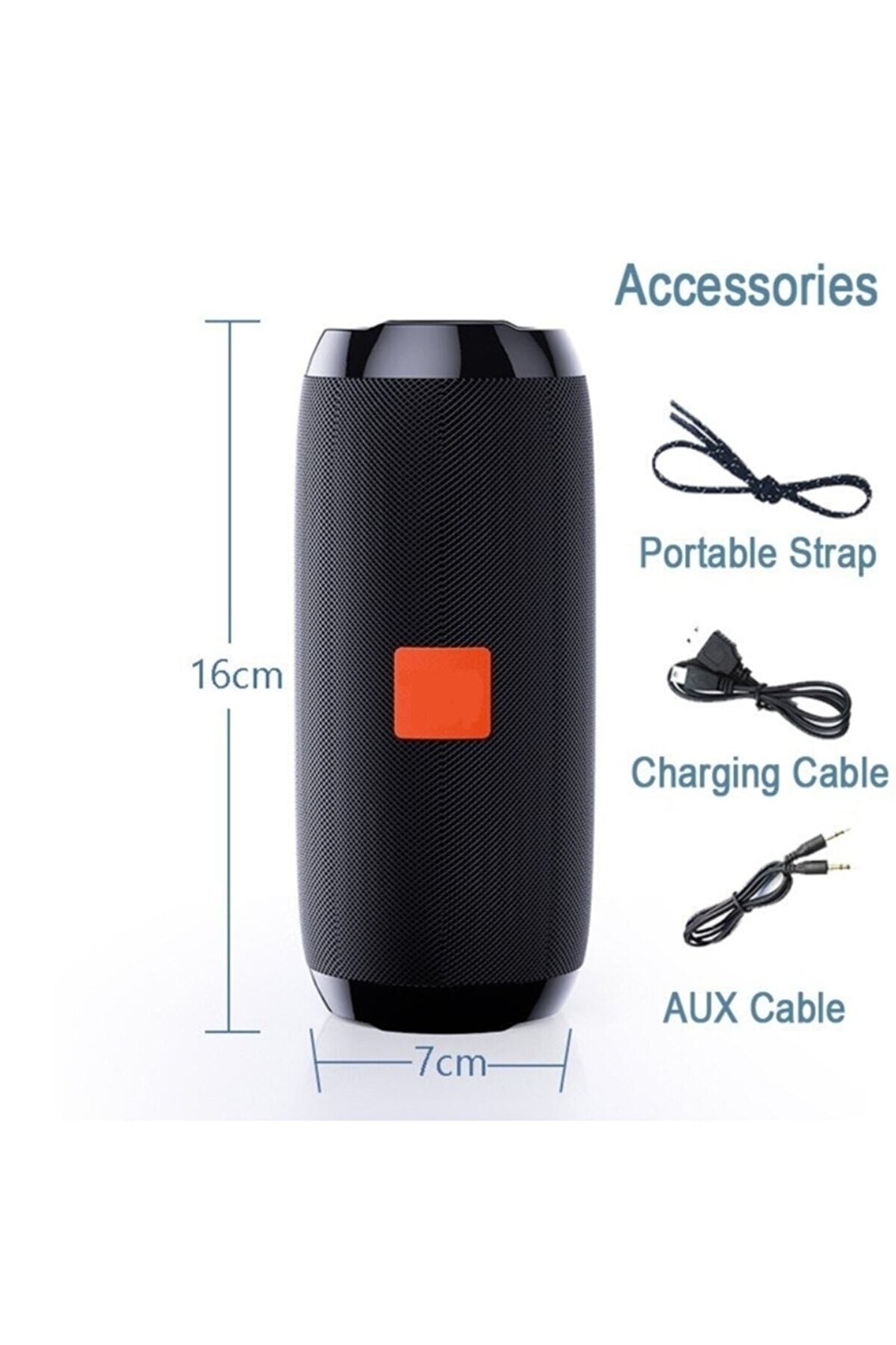 ÖNCELİKLE ÜRÜNÜ 2 SAAT ŞARJ EDİN AÇMA TUŞUNA BASILI TUTUP AÇTIGINIZDA BLUETOOTH MODUNDA AÇILIR M TUŞUNA BASTIĞINIZDA FM MODUNA GEÇER AÇMA TUŞUNA AÇMA TUŞUNA 1 DEFA BASTIGINIZDA KANLLARI ARAYIP KAYIT EDER ARTI VE EKSİ TUŞUNDAN KANAL DEĞİŞTİREBİLİRSİNİZ Ürünün sesini açmak için + tuşuna basılı tutunuz. ; Tüm cep telefonu modellerine ve tablet modellerine uyumludur. ; Tv bilgisayar hoparlörü olarak da kullanılabilir. ; Su geçirmez özel üretimdir. ; Oynatma fonksiyonları : Bluetooth-Usb-Sd card-Aux Bluetooth çekim mesafesi : 10 mt kadar Çalışma süresi : 3-4 saate kadar Şarj olma süresi : 2 saat civarı Frekans aralığı : 2khz- 20khz Hoparlör çıkış gücü : 2X5W Pil kapasitesi : 1200 mah Şarj girişi : 3.7v Ses gürültü oranı : 90 db Bluetooth versiyonu : 4.2 Kutu içeriği: 1 adet usb şarj kablosu micro 1 adet aux kablo 1 adet bluetooth hoparlör ÜRÜN Boyutu: 75.5 * 75.5 * 161.1mm ÜRÜN Ağırlığı: 560g;