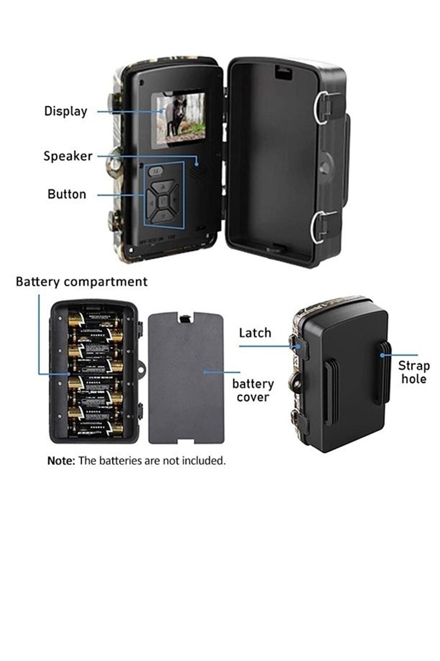 Ürün detaylarıbu iz kamerası, 0,8 saniye gibi etkileyici bir hızla nesnelerin veya hayvanların herhangi bir hareketini algılayarak tetiklenebilen oldukça hassas bir pır sensörüne sahiptir. ; Net 12mp resimler ve 1080p video klipler çeker, dış mekan keşif oyunları ve vahşi yaşam gözlemi için mükemmel seçimdir.(opsiyonel tf kart ve kart okuyucu)özellikler:Net görüntüler ve videolar: Yol ve oyun kameraları, gündüz 12 megapiksel net renkli fotoğraflar (geceleri siyah beyaz) ve sesli 1080p videolar çekebilir.Hareket algılama: 90° pır algılama açısı ve 0,8 saniyelik etkileyici hızlı tetikleme hızı, her hareket algılanan 3 fotoğraf ve 10 saniyeye kadar video klip çekerek heyecan verici anları asla kaçırmayacağınızı garanti eder.Gece görüşü: 38 kızılötesi siyah led, kamerayı doğal yaşam alanlarını istila etmeyen görünmez bir cihaz haline getiren gece görüşü özelliği sağlar.Ip66 su geçirmez: Sağlam yapı -20 ? ile 70 ? arasındaki aşırı dış ortam sıcaklıklarına dayanır ve ıp66 su geçirmezlik koruması sağlar. ; Avcılık, vahşi yaşam gözlemi, ev güvenliği, gözetim ve daha pek çok alanda yaygın olarak kullanılan uzun süre açık havada yerleştirilebilir.Özellikler:Ekran: 2.0tft renkli ekrangörüntü sensörü: 1 megapiksel renkli cmosmaks. ; Piksel: 4096*3072fotoğraf boyutu: 12mp, 8mp, 5mp, 1.3mp, 0.3mpvideo çözünürlüğü: 1920*1080ptetik süresi: 0.8skızılötesi ışık: 38 adet 940nm ır led'lertetikleyici başına fotoğraf: 1 - 3 fotoğrafvideo klipler: 10 saniye - 3 dakikapır açısı: 90°objektif: 110°pır mesafesi: 10m / 33ftgüç kaynağı: 4 aa veya 8 aa pil veya dc5v (dahil değildir)bekleme süresi: 4 - 8 aybekleme akımı: <0.25masıcaklık: -20~+70?düşük pil hatırlatma: 4.0vsu geçirmez: Ip66bellek: 8- 32gb c10 tf kartı (dahil değildir)boyut: Yaklaşık. ; 13.5*10*5.5 cm/5.3*3.9*2.2inyaklaşık ağırlık. ; 249gpaket listesi:1 * kamera1 * montaj kayışı1 * kullanım kılavuzu(opsiyonel tf kart ve kart okuyucu) net görüntüler ve videolar: Yol ve oyun kameraları, gündüz 12 megapiksel net renkli fotoğraflar (geceleri siyah beyaz) ve sesli 1080p videolar çekebilir. ; Hareket algılama: 90° pır algılama açısı ve 0,8 saniyelik etkileyici hızlı tetikleme hızı, her hareket algılanan 3 fotoğraf ve 10 saniyeye kadar video klip çekerek heyecan verici anları asla kaçırmayacağınızı garanti eder. ; Gece görüşü: 38 kızılötesi siyah led, kamerayı doğal yaşam alanlarını istila etmeyen görünmez bir cihaz haline getiren gece görüşü özelliği sağlar. ; Ip66 su geçirmez: Sağlam yapı -20 ? ile 70 ? arasındaki aşırı dış ortam sıcaklıklarına dayanır ve ıp66 su geçirmezlik koruması sağlar. ; Avcılık, vahşi yaşam gözlemi, ev güvenliği, gözetim ve daha pek çok alanda yaygın olarak kullanılan uzun süre açık havada yerleştirilebilir.;