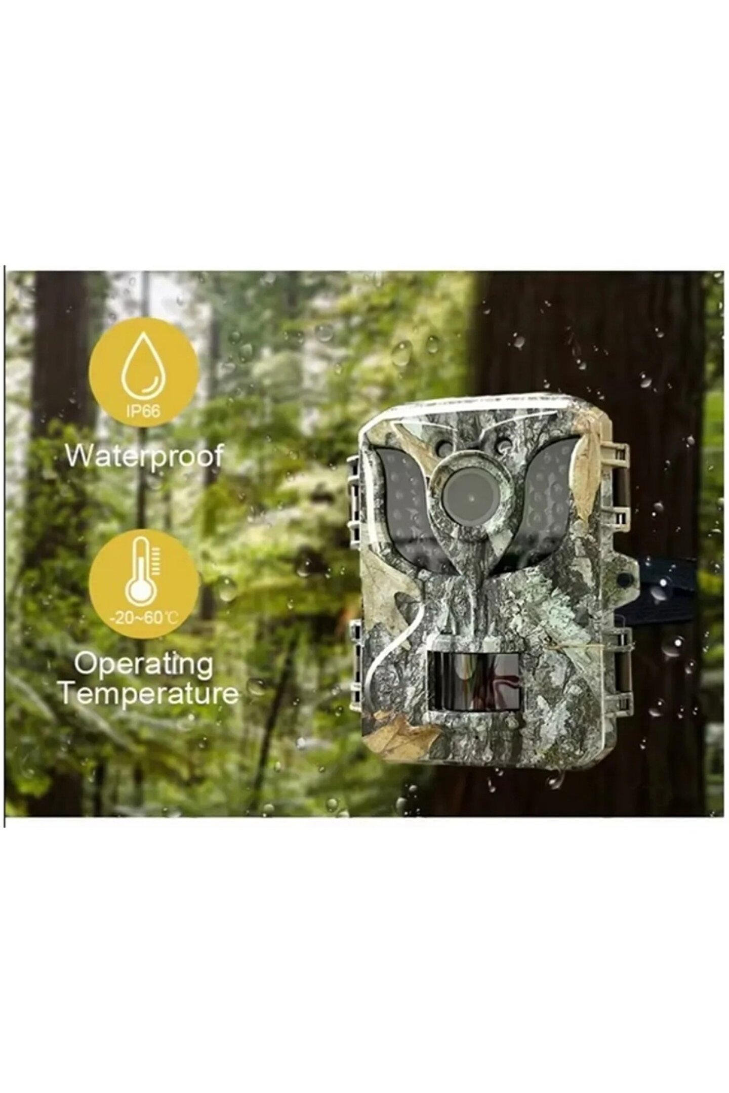2.0 Inç Ips Avcılık Kamera 1080 p Video Avcılık Trail Su Geçirmez Açık Yaban Hayatı Avcılık takip kamerasısatış noktaları1. Gece Görüşlü Av Kamerası2. 2PIR Termal algılama3. Su geçirmez: IP66 seviyesi4. Kızılötesi Işık: 42ps * LED'ler (940nm)ŞartnameÜrün adı2PIR Gece Görüşlü Av KamerasıGörüntülemek2 inç LCD ekranİşlemci6248SensörGC2053LensSabit odaklı lens açısı 90°Kızılötesi ışık42ps * LED'ler (940nm)Çözünürlük1080FHD1920x1080;720P1280x720Video formatıAVİFotoğraf Hareketsiz görüntü16M/12M/8M/5M/3M/1,3M (JPEG)PIR Algılama2PIR Termal algılamaTetikleme Süresi0,5 saniyeAlgılama Mesafesi10-15m içindeÇalışma moduGündüz geceSeri Çekim1~3 fotoğrafVideo UzunluğuAyar için 10S ~ 3 dakikaFotoğraf+VideoYakala ve ardından video kaydı yapSesKapalı/AçıkGüçTek kullanımlık pil AA boyutu 4ps-8ps (dahil değildir)Pil Ömrü4-6 ayBekleme akımı? 0,15mAOtomatik kapalıKAPALI/3dk/5dk/10dkGüç tüketimi180mA (IR LED'ler çalışırken 1000mA), DC 6V durumundaDüşük Güç Alarmı4.5VarayüzlerKart yuvası, mikro USB 2.0, DC bağlantı noktasıKurulumKayış ileSu geçirmezIP66 seviyesiÇalışma sıcaklığı-20°C~+70°Cçalışma nemi%5~%95