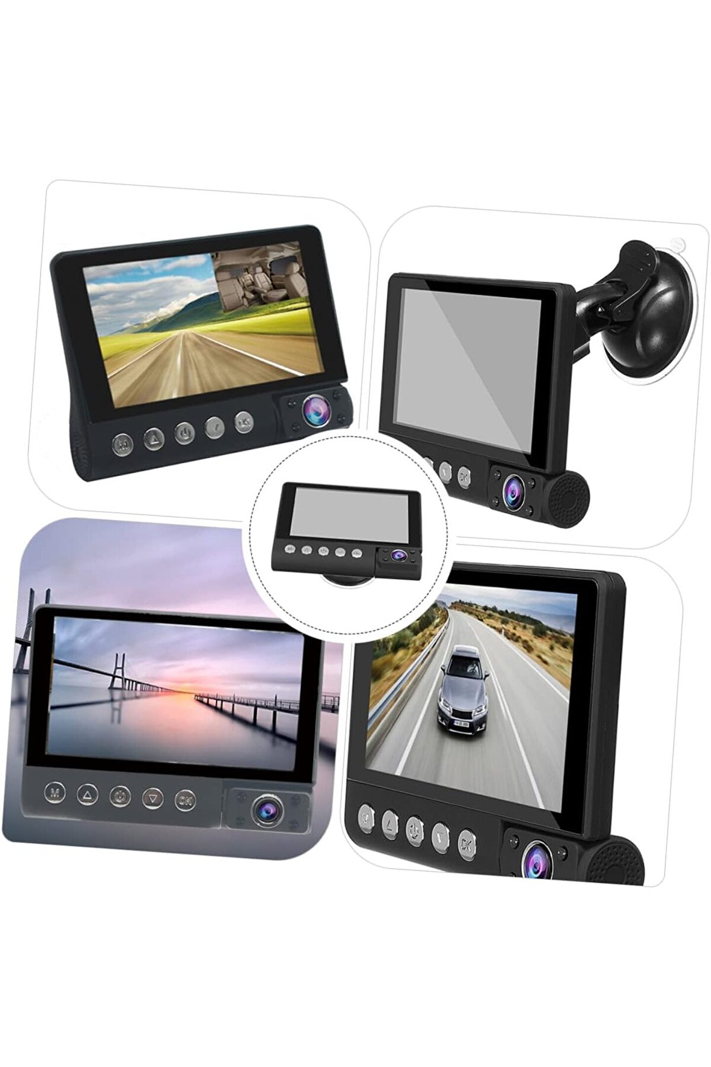 • Gece Görüşlü 4 inç 3 Kameralı Araç Kamerası, Döngü Kayıt, Geniş Açı Görünümü, Tüm Arabalar için